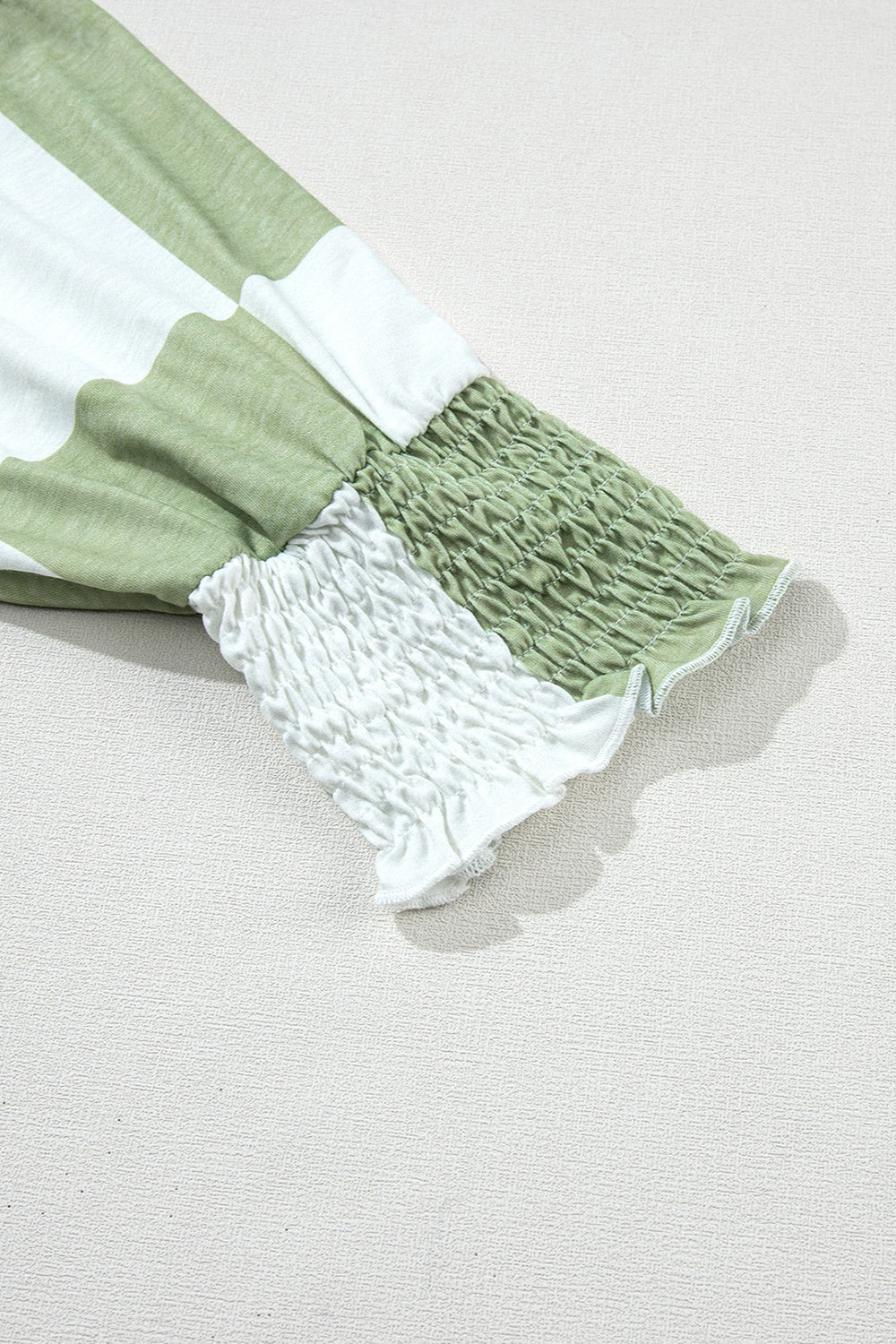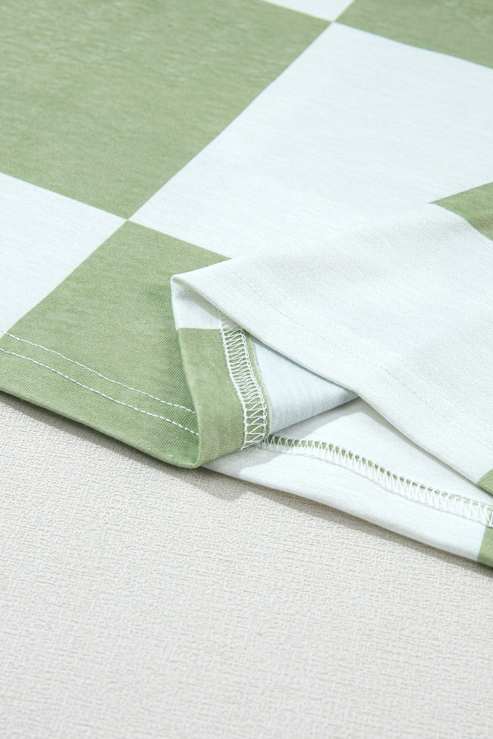 • Load image into Gallery viewer, Checkered Round Neck Lantern Sleeve Top
