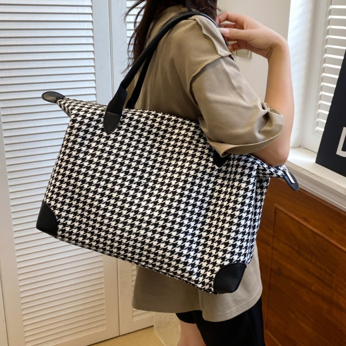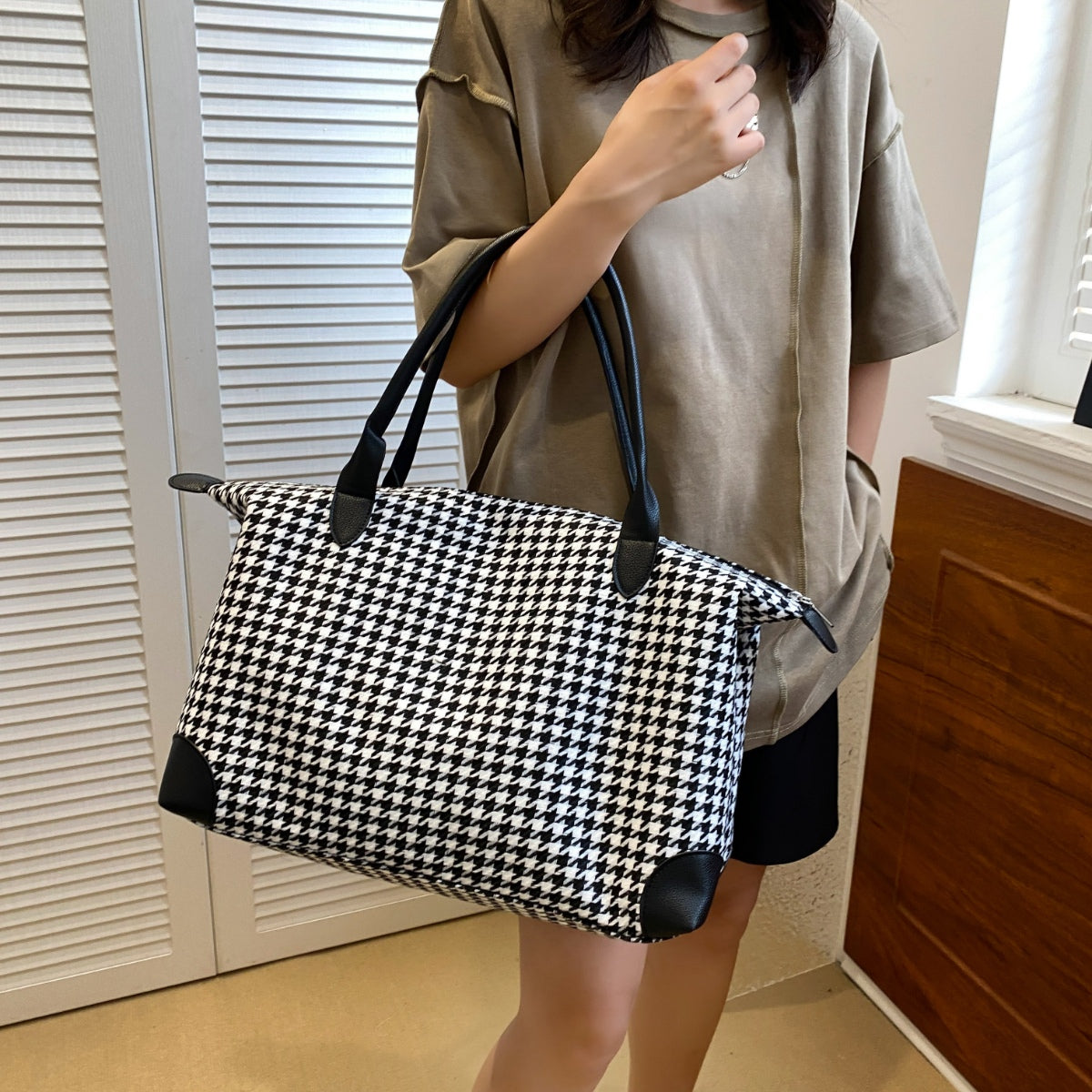 Houndstooth Canvas Travel Bag