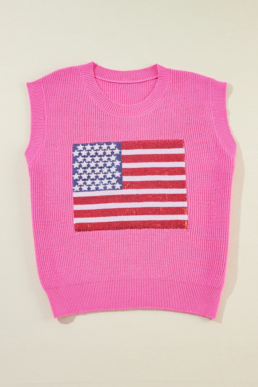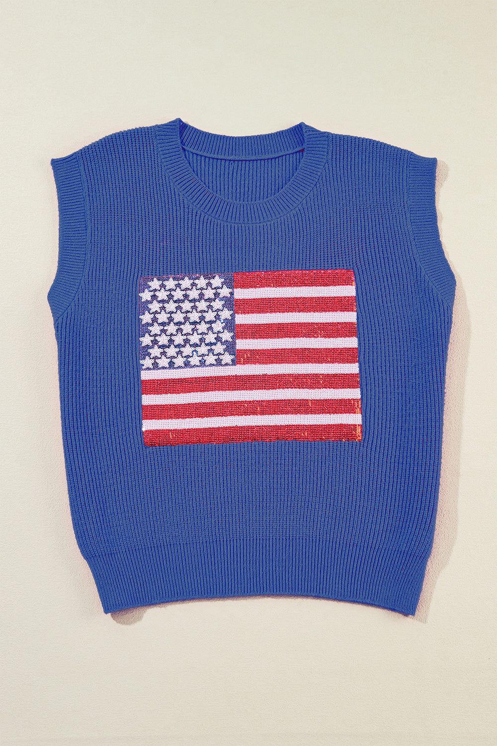 • Load image into Gallery viewer, Sequin US Flag Round Neck Sweater Vest