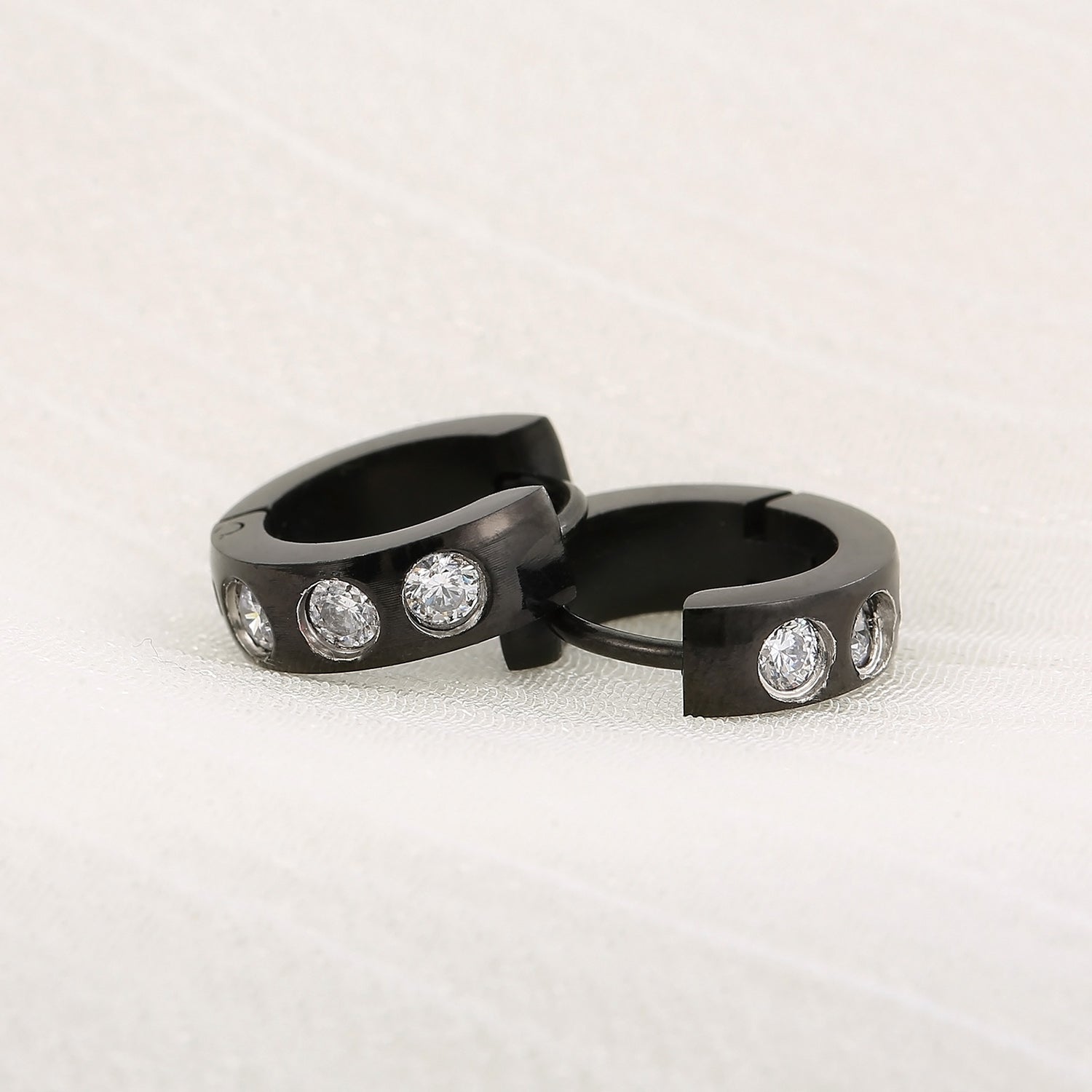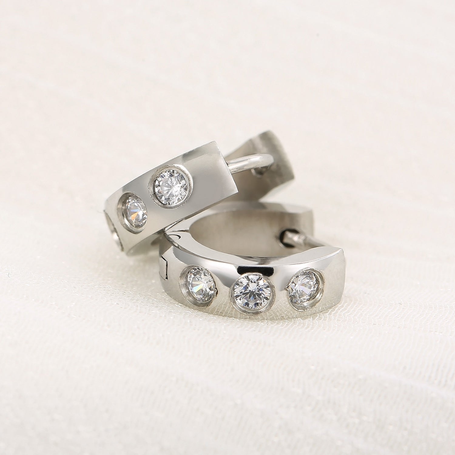 • Load image into Gallery viewer, Stainless Steel Rhinestone Huggie Earrings