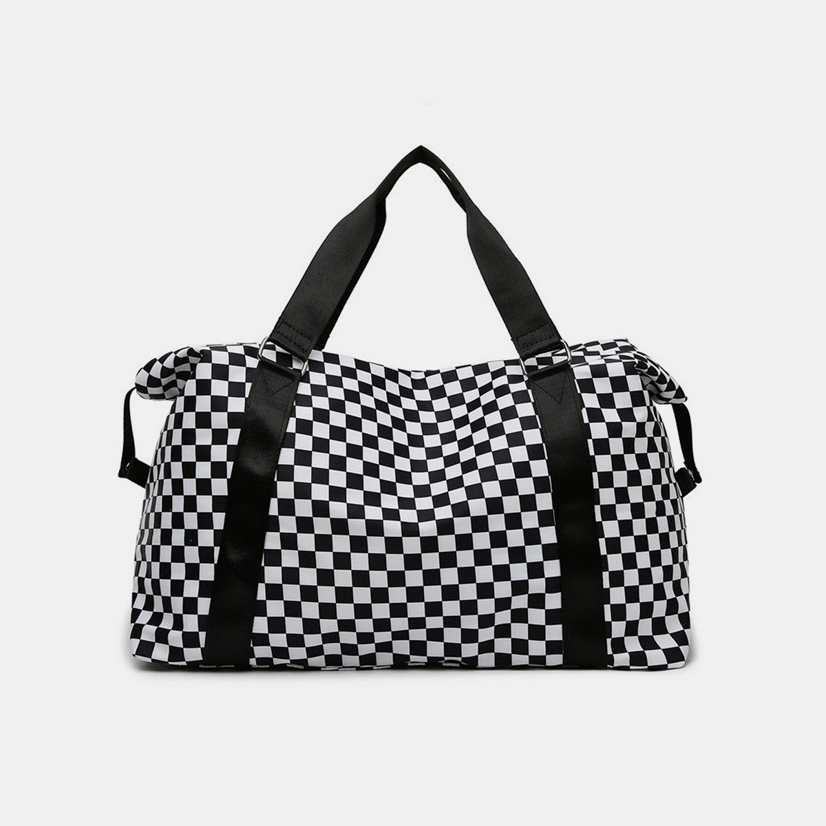 This Checkered Travel Duffle Bag is a stylish and practical choice for your next getaway. The classic checkered pattern adds a trendy touch to your travel accessories. With its spacious interior and multiple compartments, this duffle bag offers ample storage for all your essentials. The durable material ensures it will hold up to your travels. The adjustable shoulder strap and handles make it easy to carry comfortably. Pack your belongings in style with this sleek and functional duffle bag!