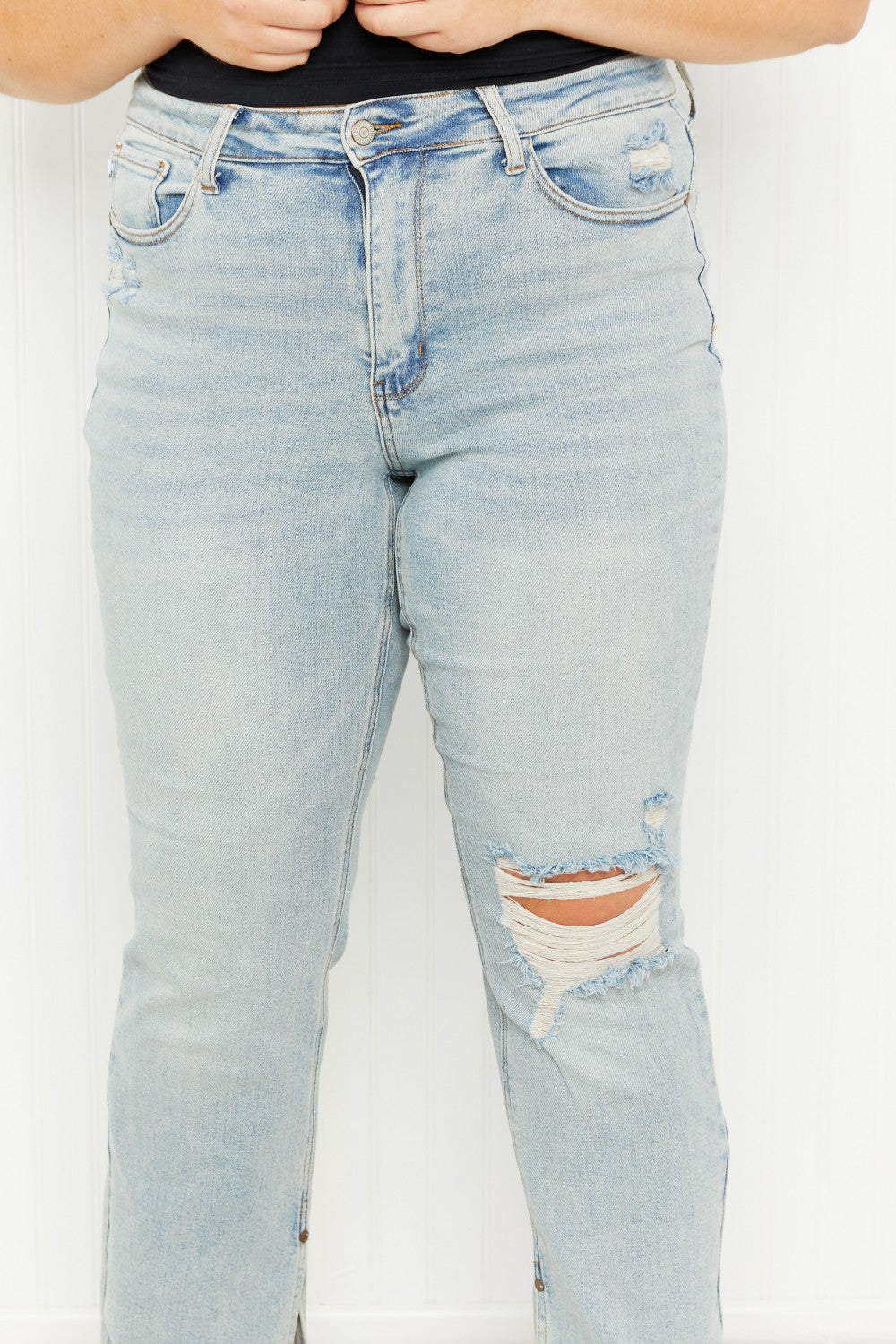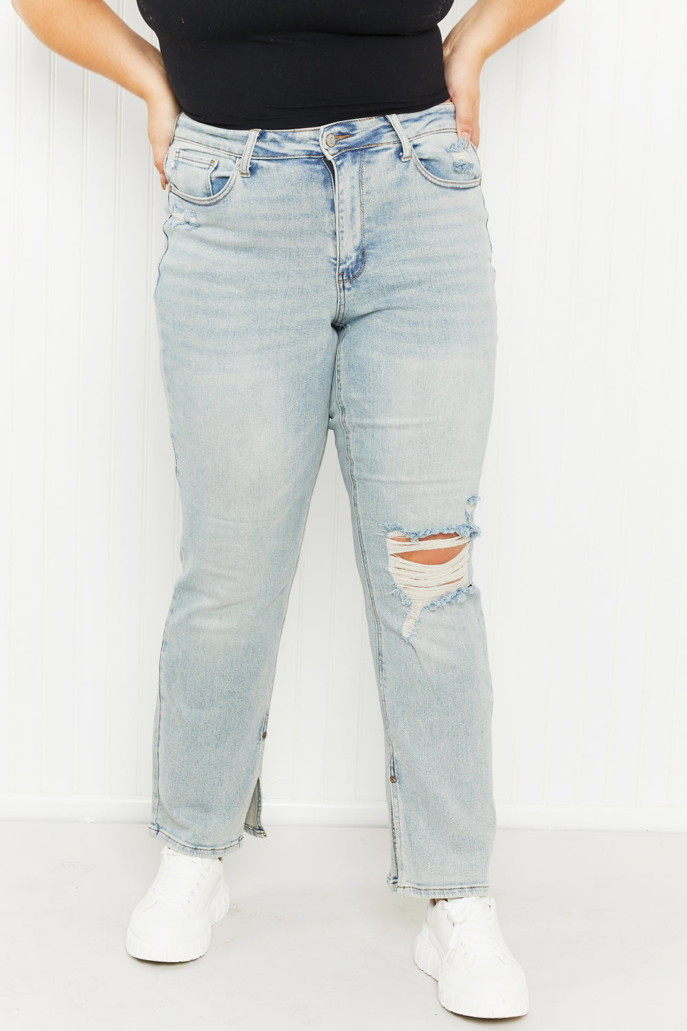 Everything about these jeans will make them your go-to pair. From the all-over vintage vibe to the aged light wash, these jeans will keep you coming back for more! Featuring a touch of distressing, ankle slits, and a timeless straight cut, you'll never want to take these off!