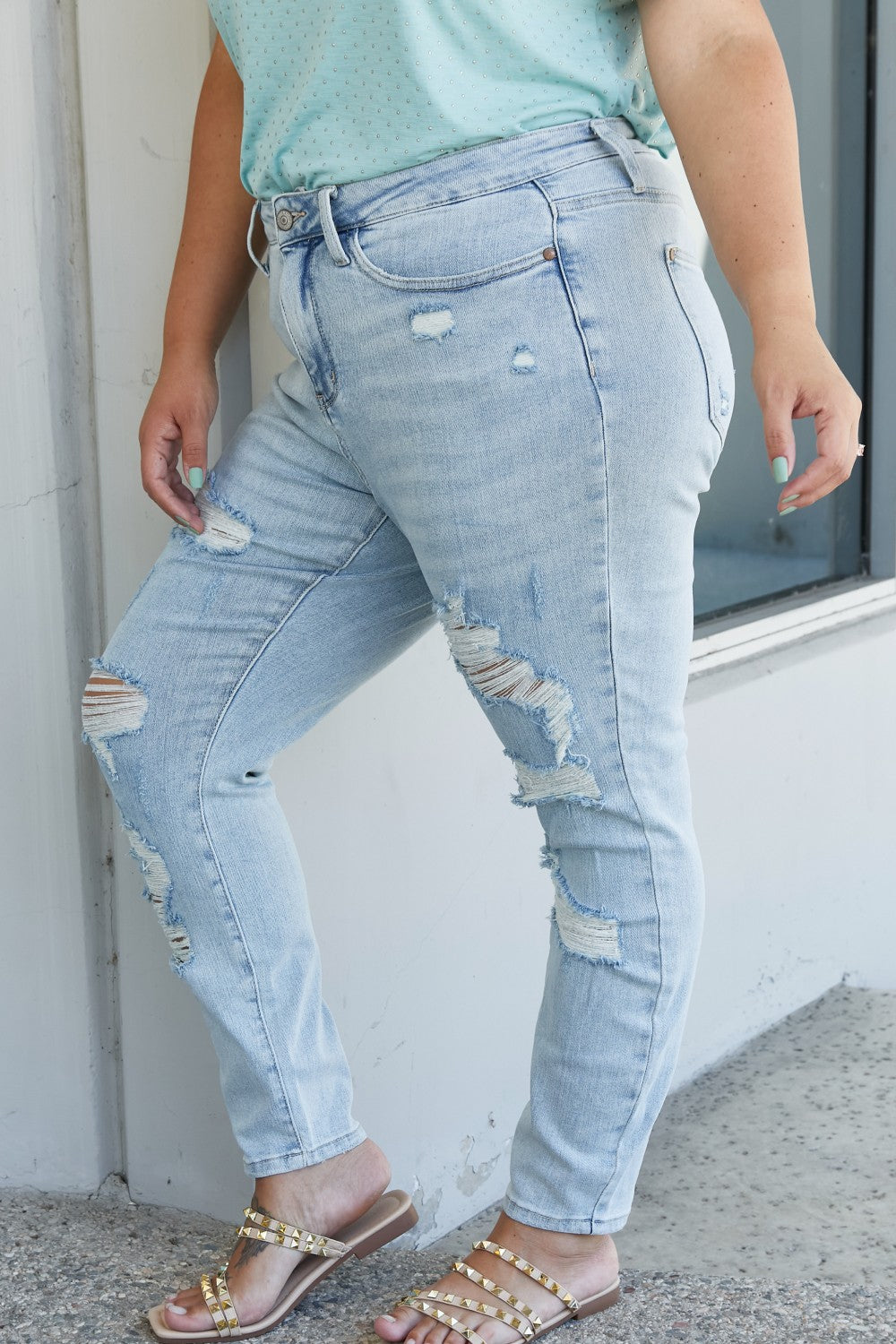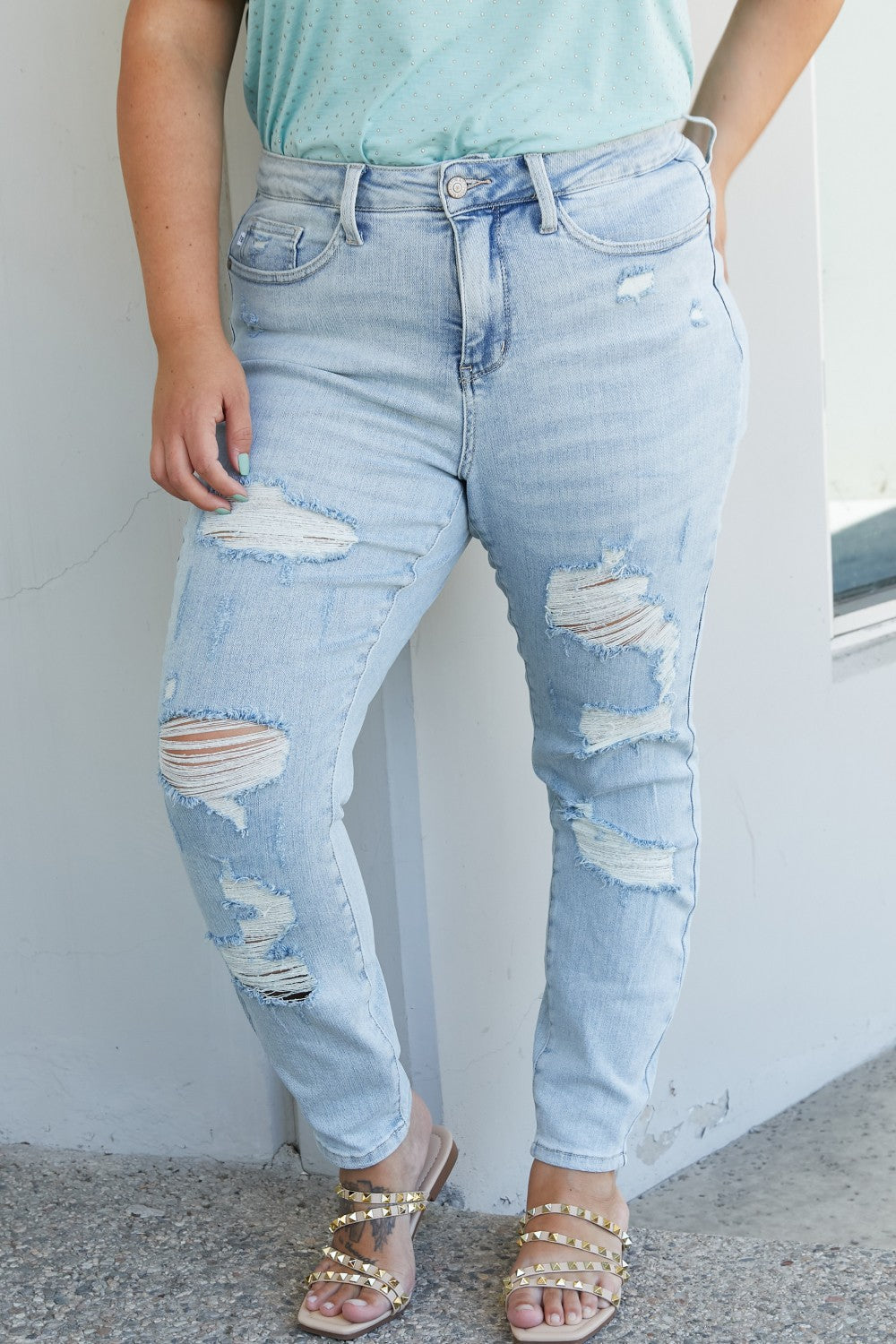 Judy Blue Shannon Full Size Destroyed Tummy Control Skinny Jeans