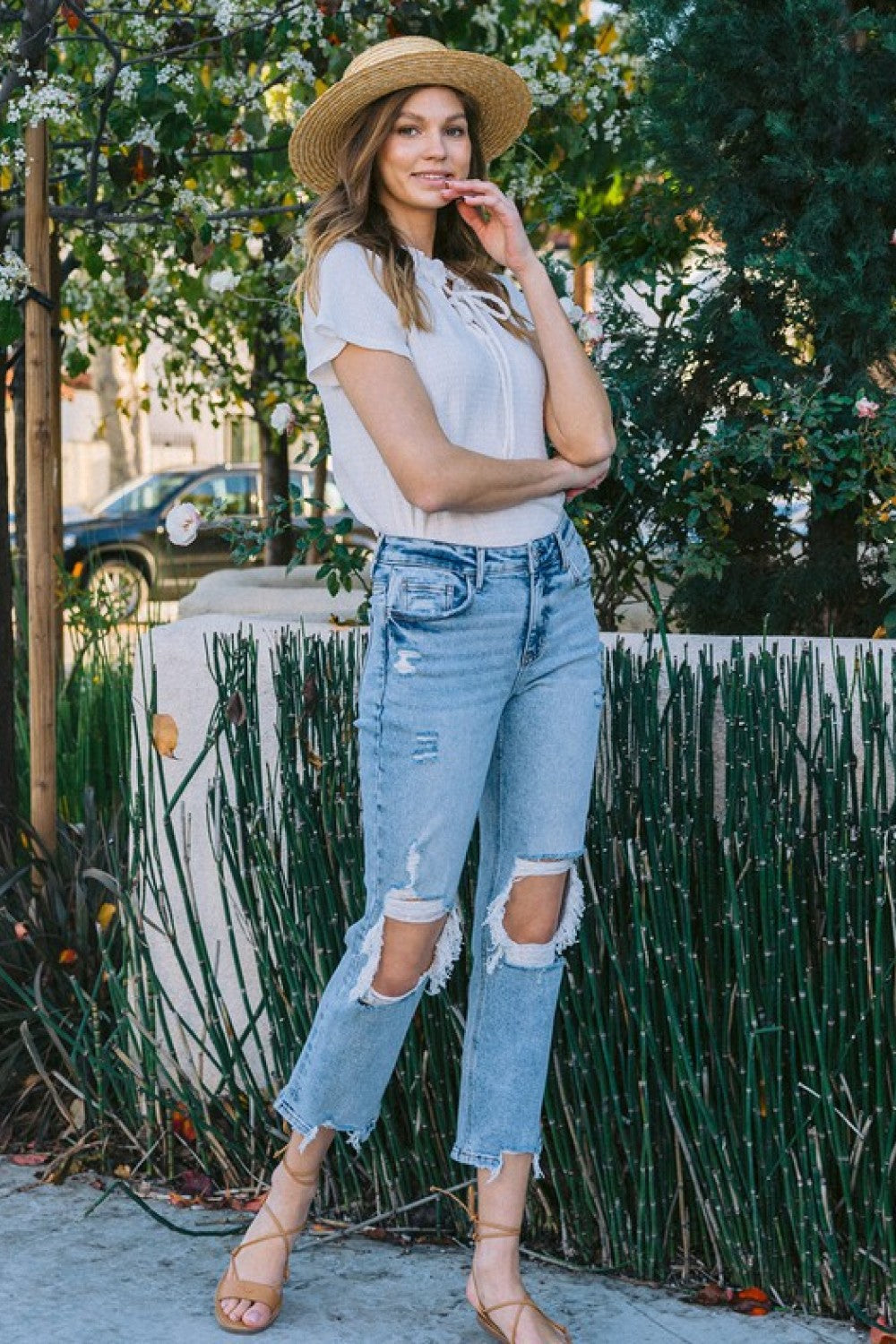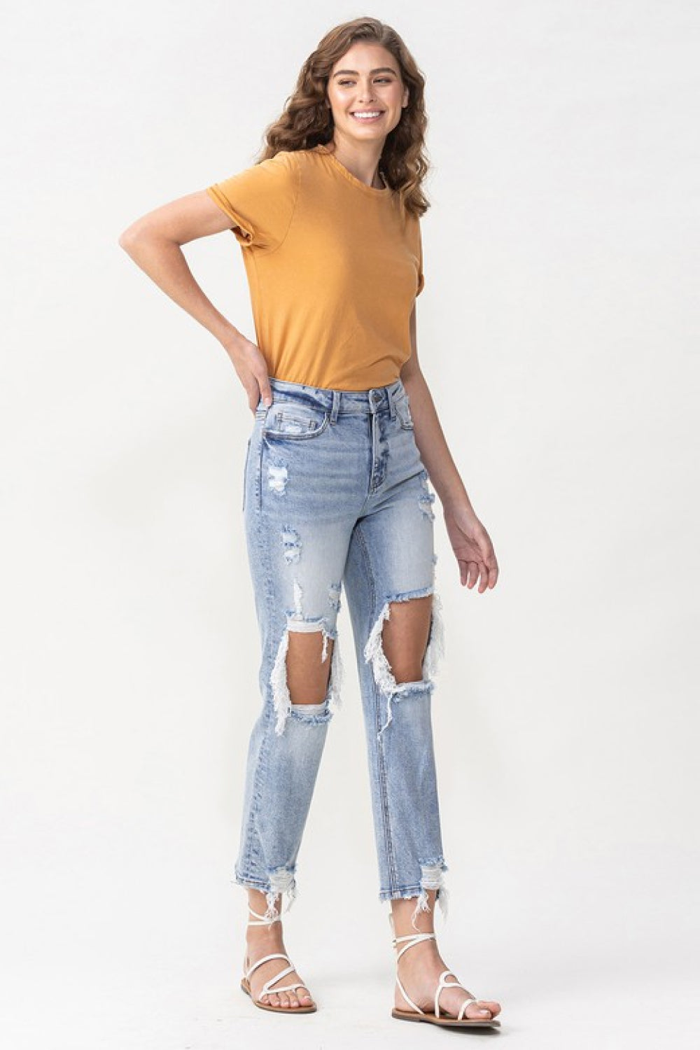 Lovervet Full Size Amari Destroyed High Rise Crop Straight Jeans
