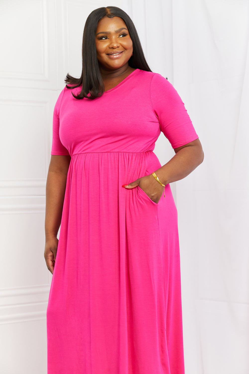 This simple short sleeve maxi dress is the perfect go-to piece for any season! The hidden pockets are super convenient for those days when you don't want to carry a purse. This is a must-have for your closet!