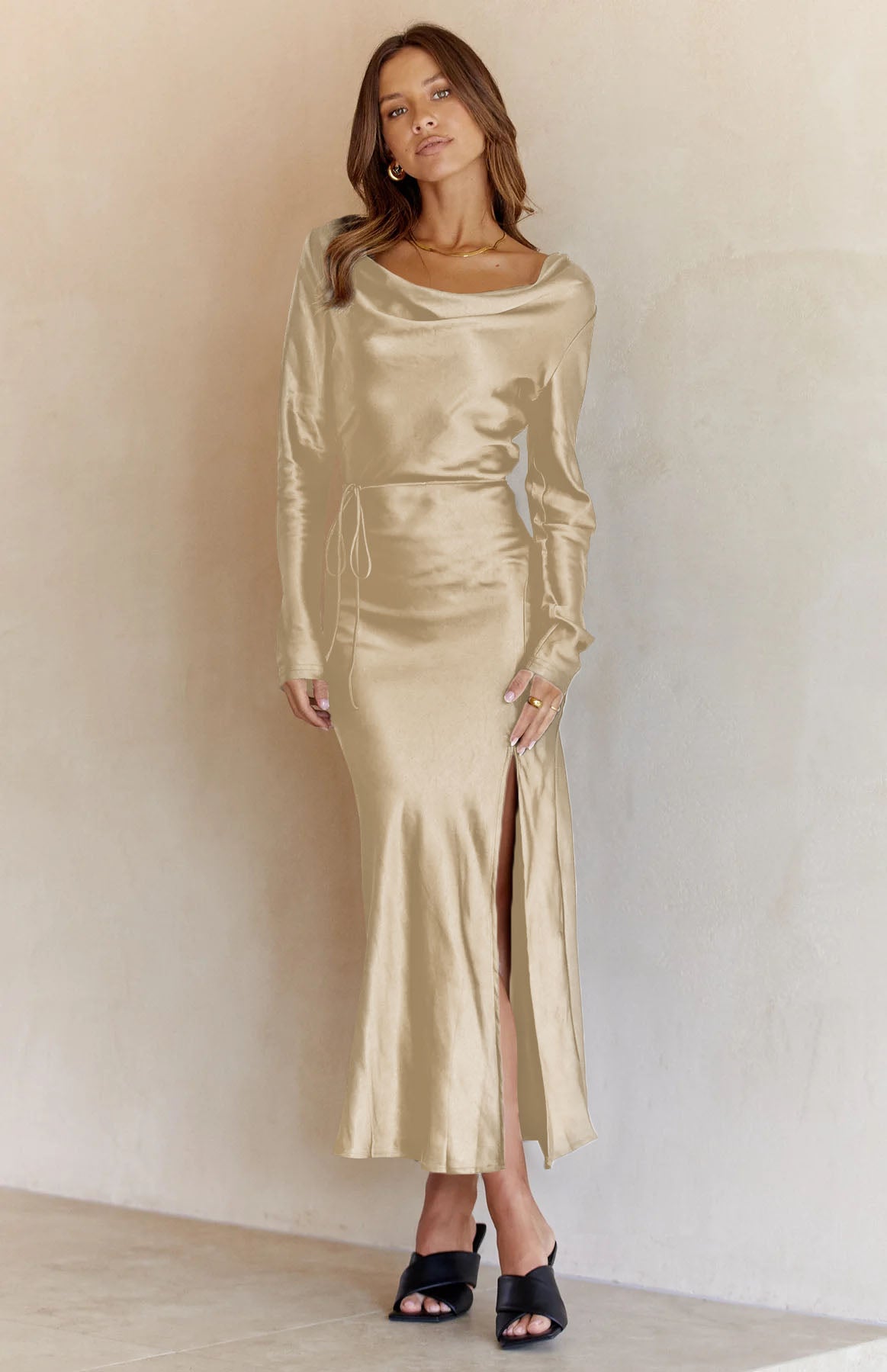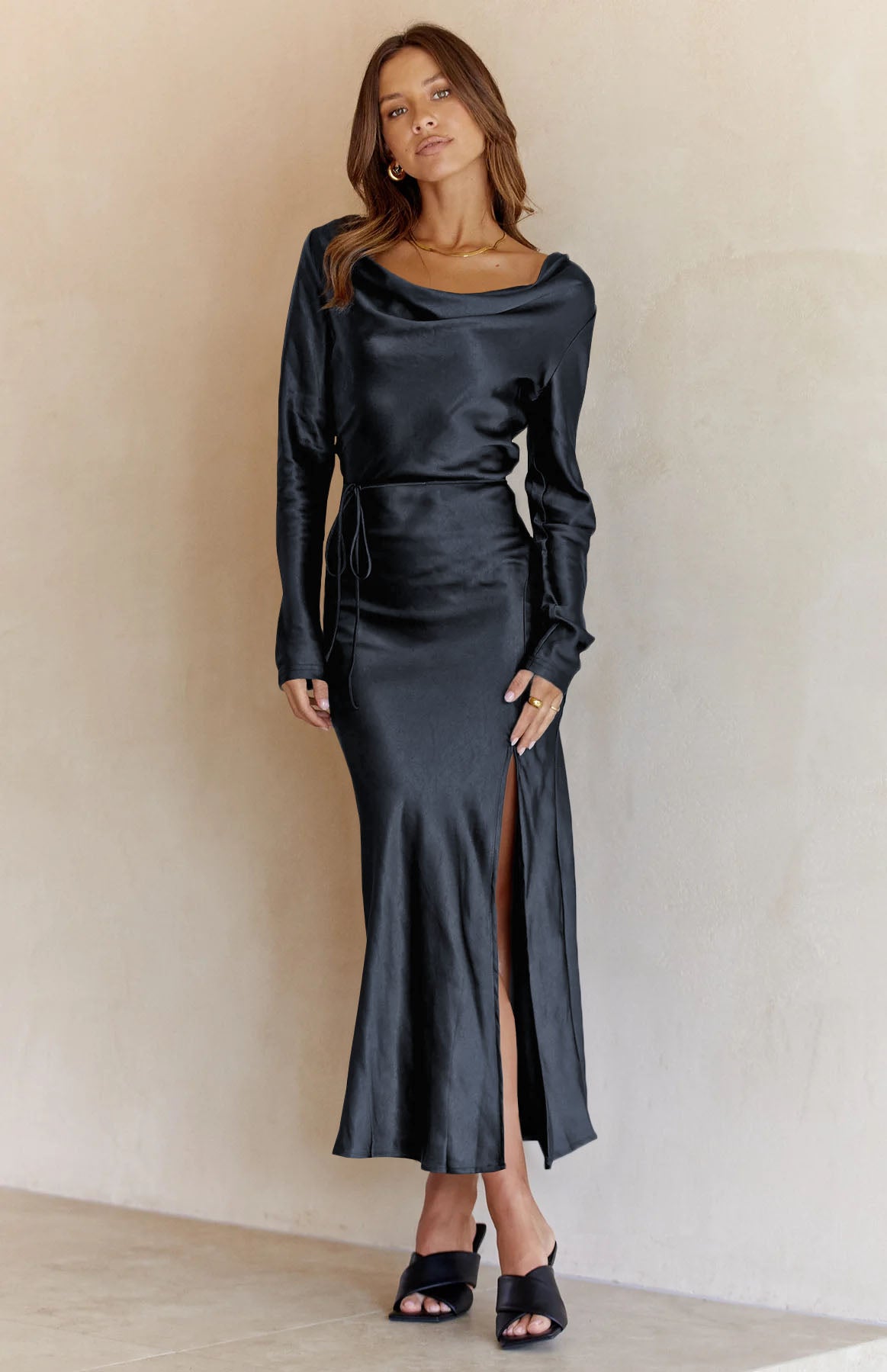 • Load image into Gallery viewer, Cowl Neck Long Sleeve Maxi Dress