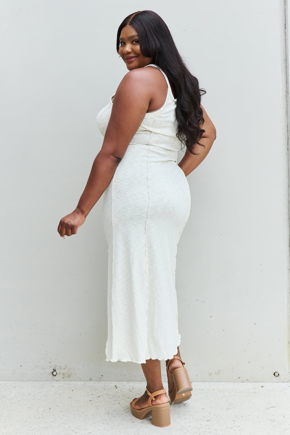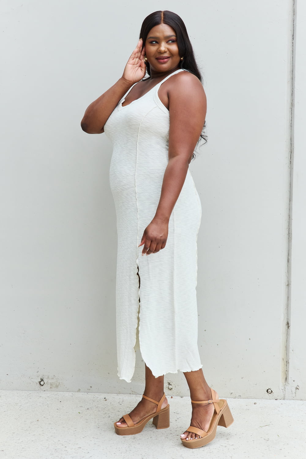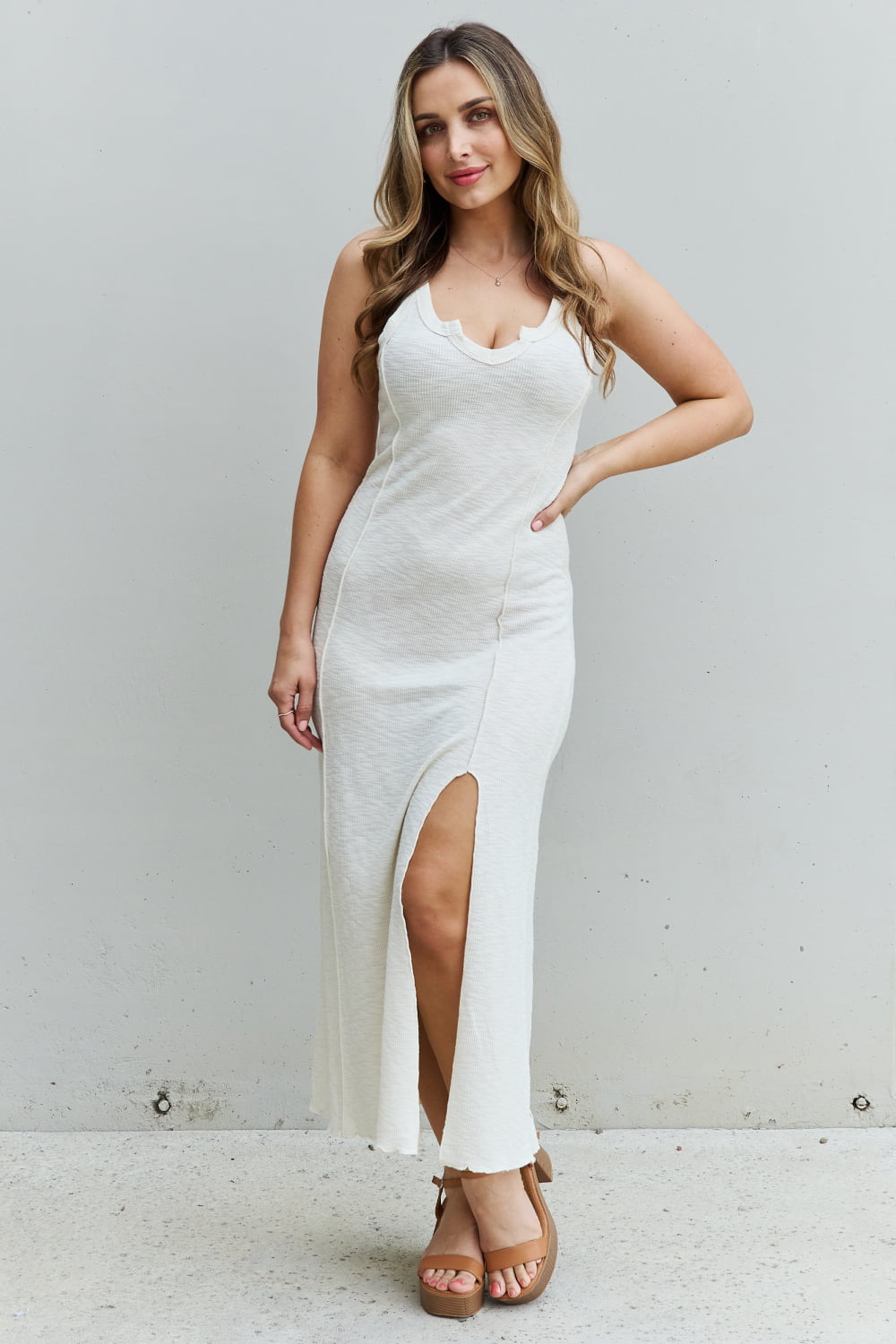 Culture Code Look At Me Full Size Notch Neck Maxi Dress with Slit in Ivory
