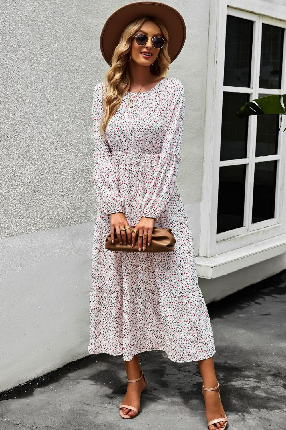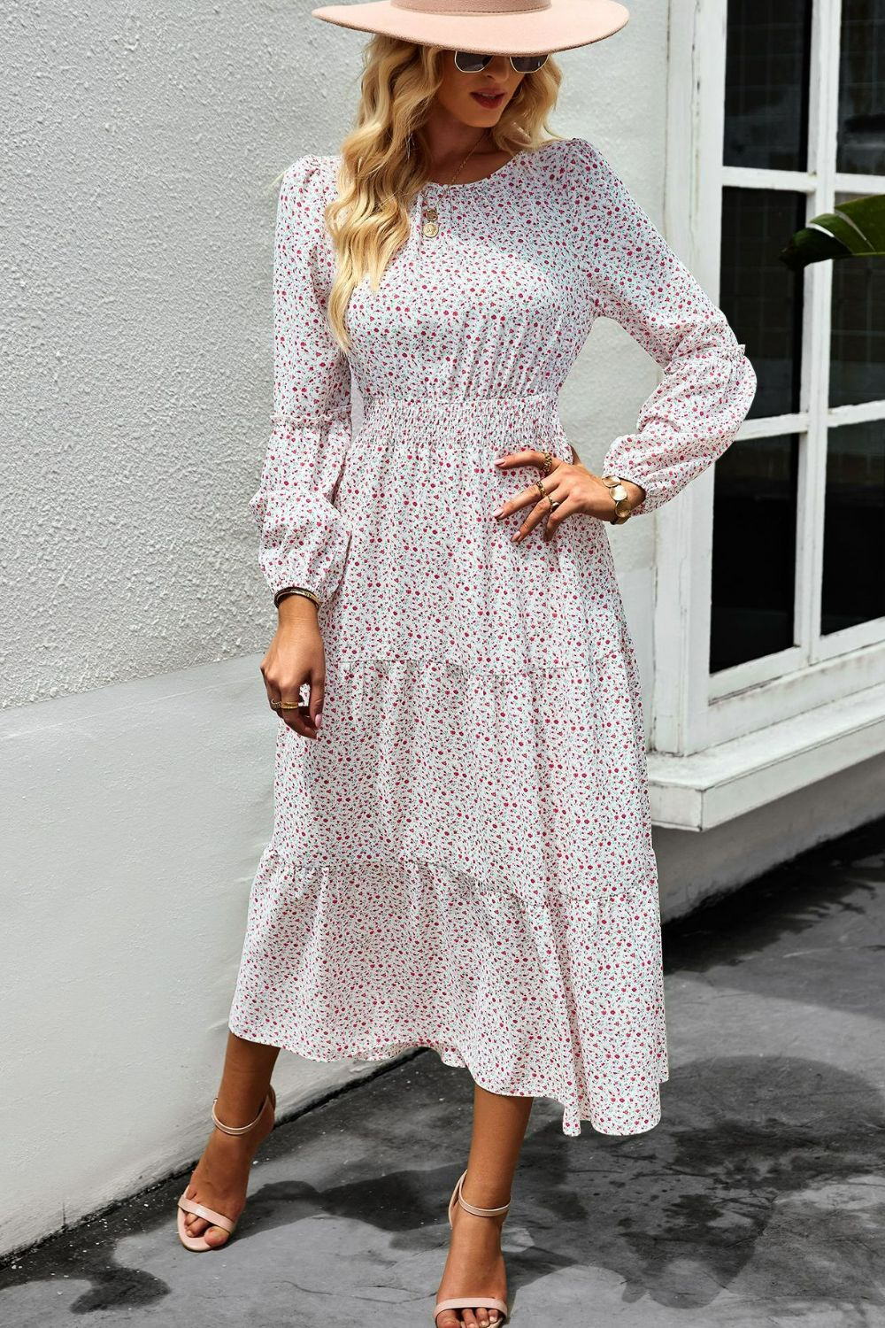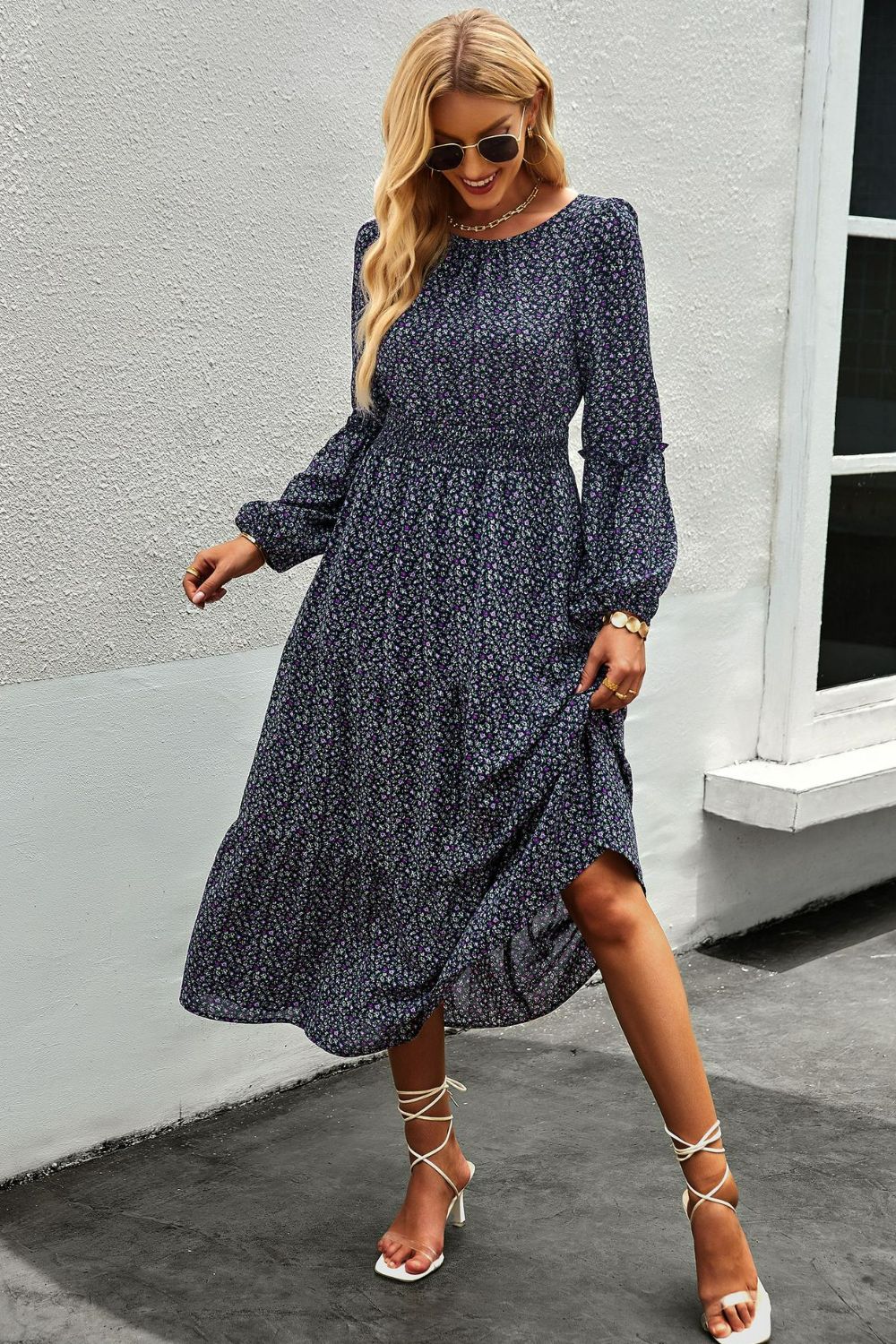 • Load image into Gallery viewer, Ditsy Floral Round Neck Tiered Dress