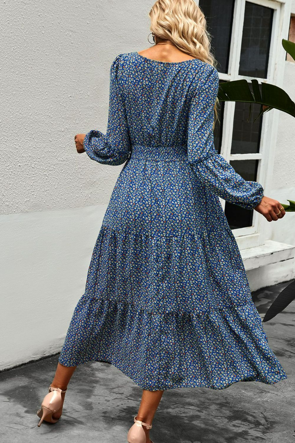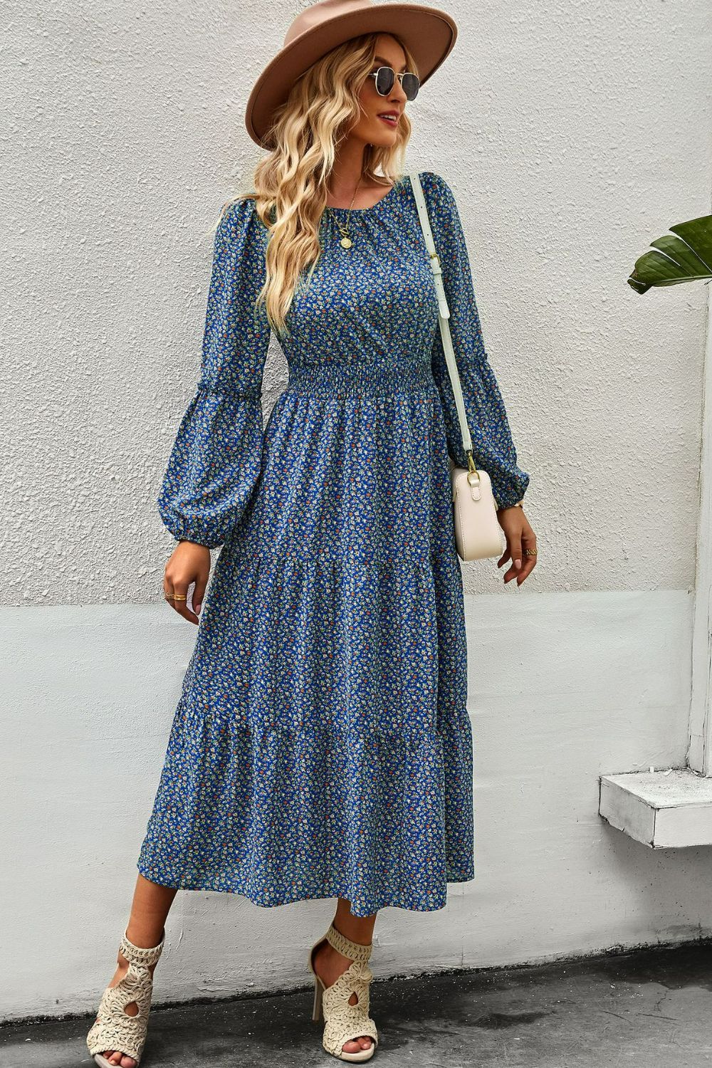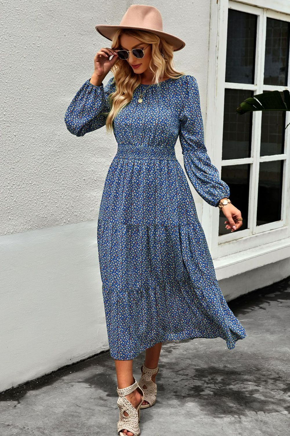 • Load image into Gallery viewer, Ditsy Floral Round Neck Tiered Dress