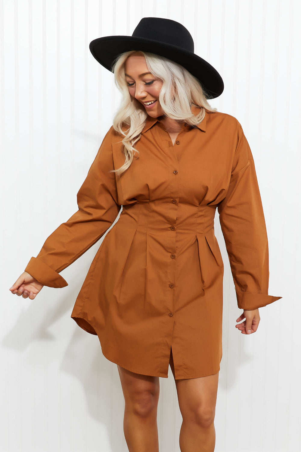This shirt dress takes it up a notch with its cute details! Featuring pleats and an A-line silhouette, the dress hits just above the knee for a cute and charming look.