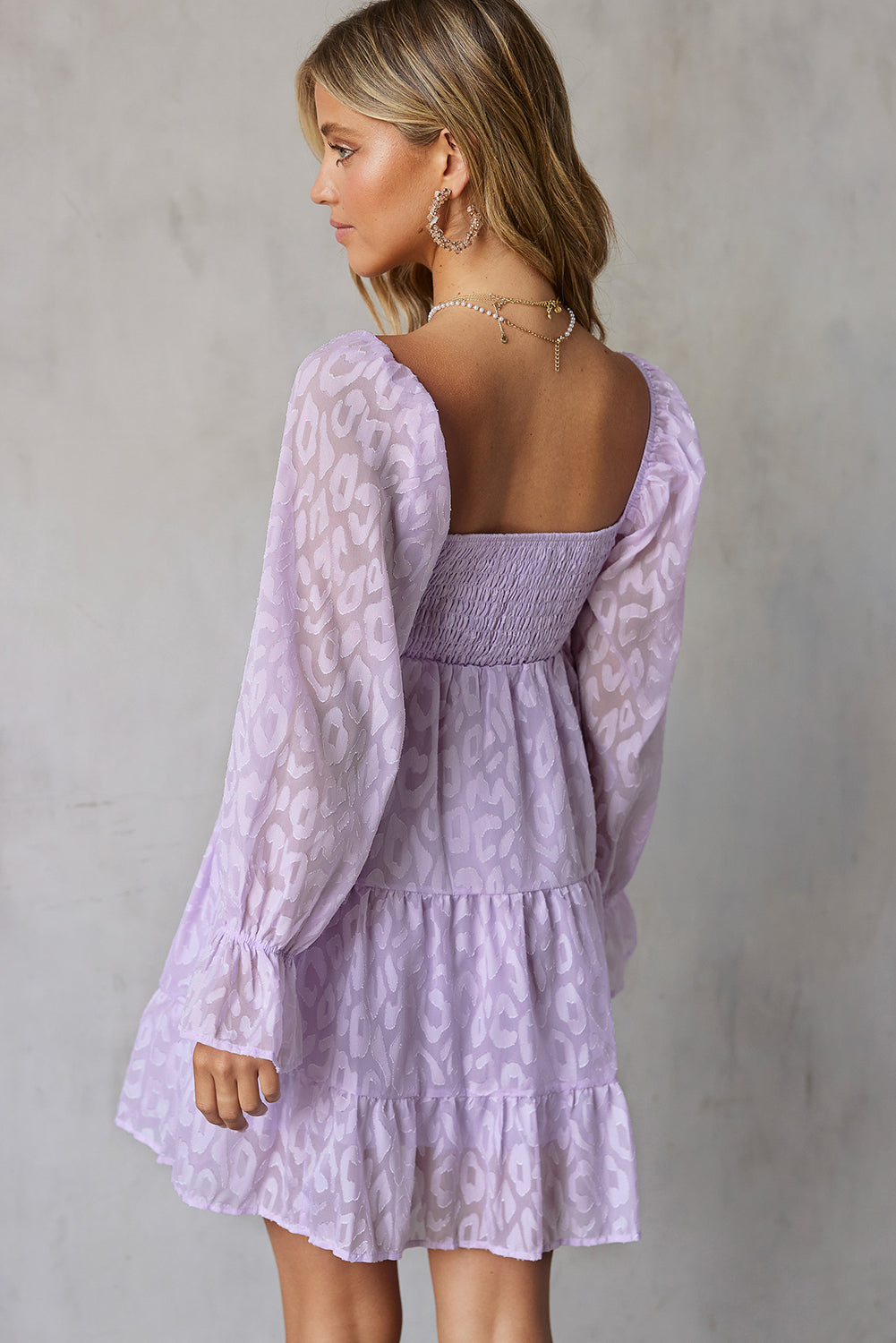 Leopard Applique Flounce Sleeve Smocked Tiered Dress