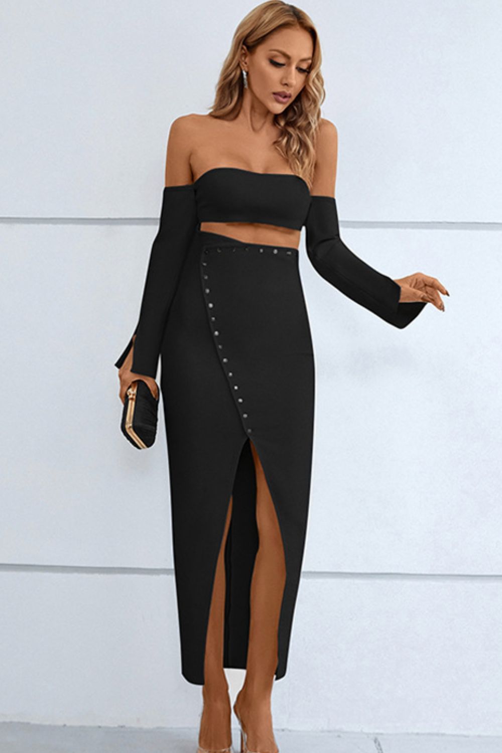 • Load image into Gallery viewer, Off-Shoulder Cutout Front Split Dress