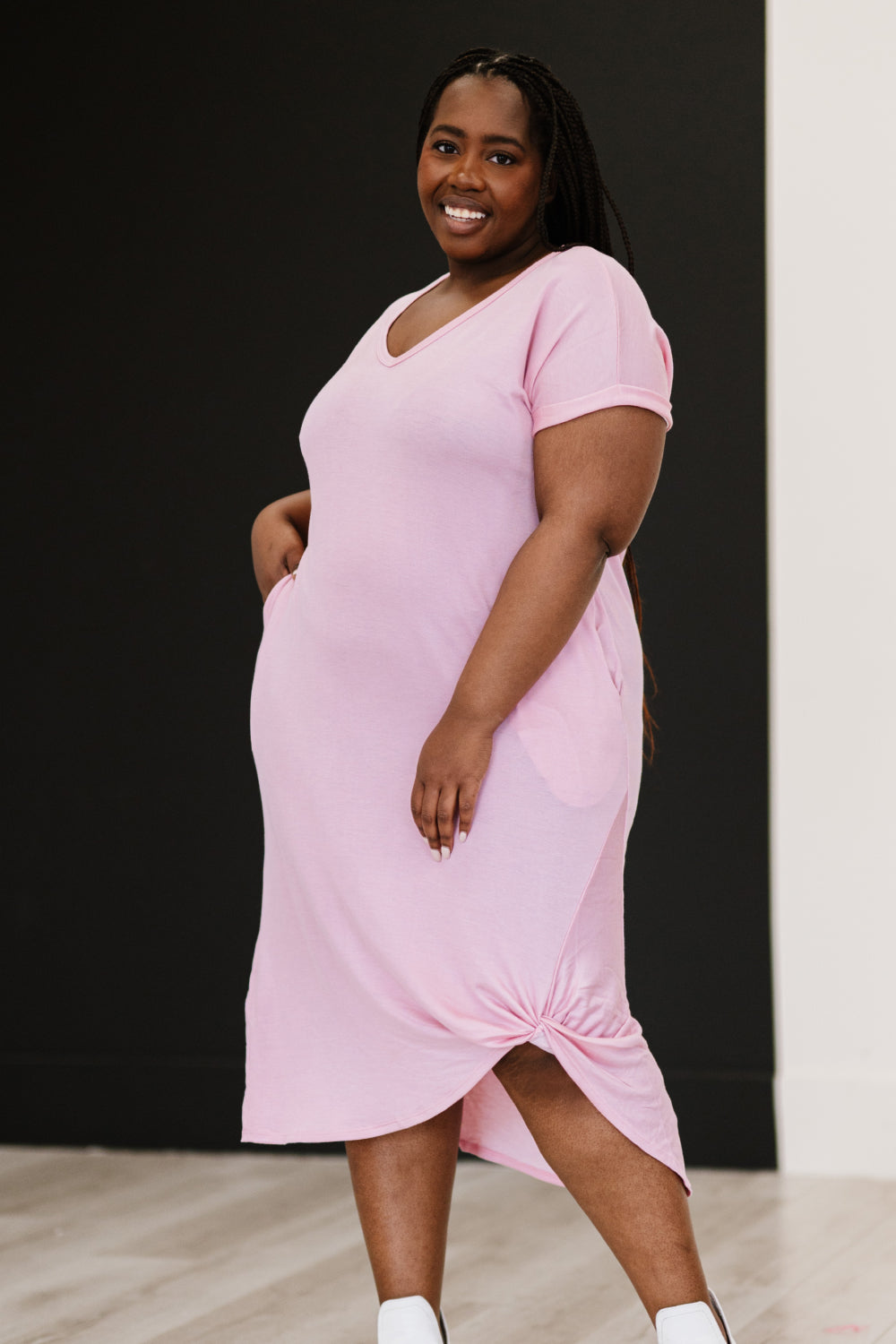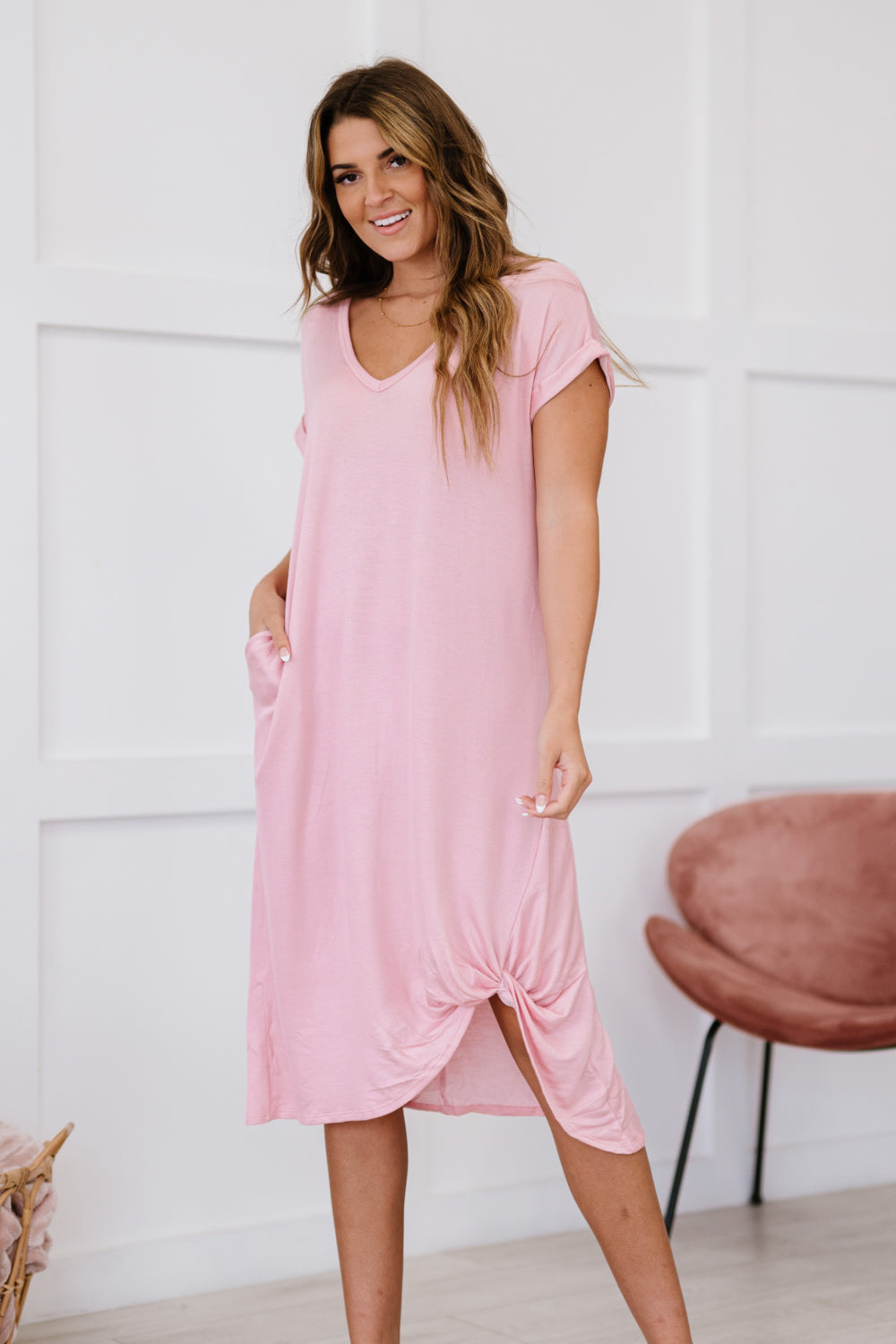 The Plot Twist T-Shirt Dress calls for some sneakers and a baseball cap for a laid-back look. The twisted detail on the hem adds a unique touch! Also featuring pockets, a v-neckline, and short cuffed sleeves, this dress will be a new go-to in your wardrobe.