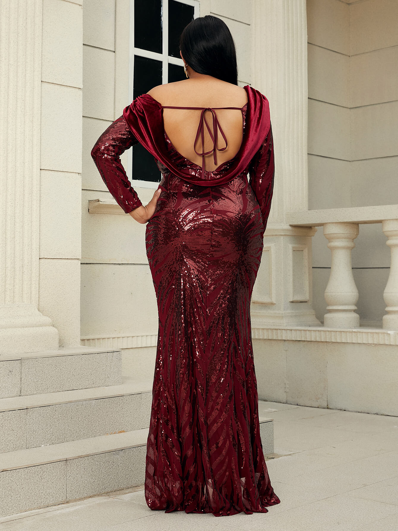 Plus Size Sequin Ruched Tie-Back Split Dress