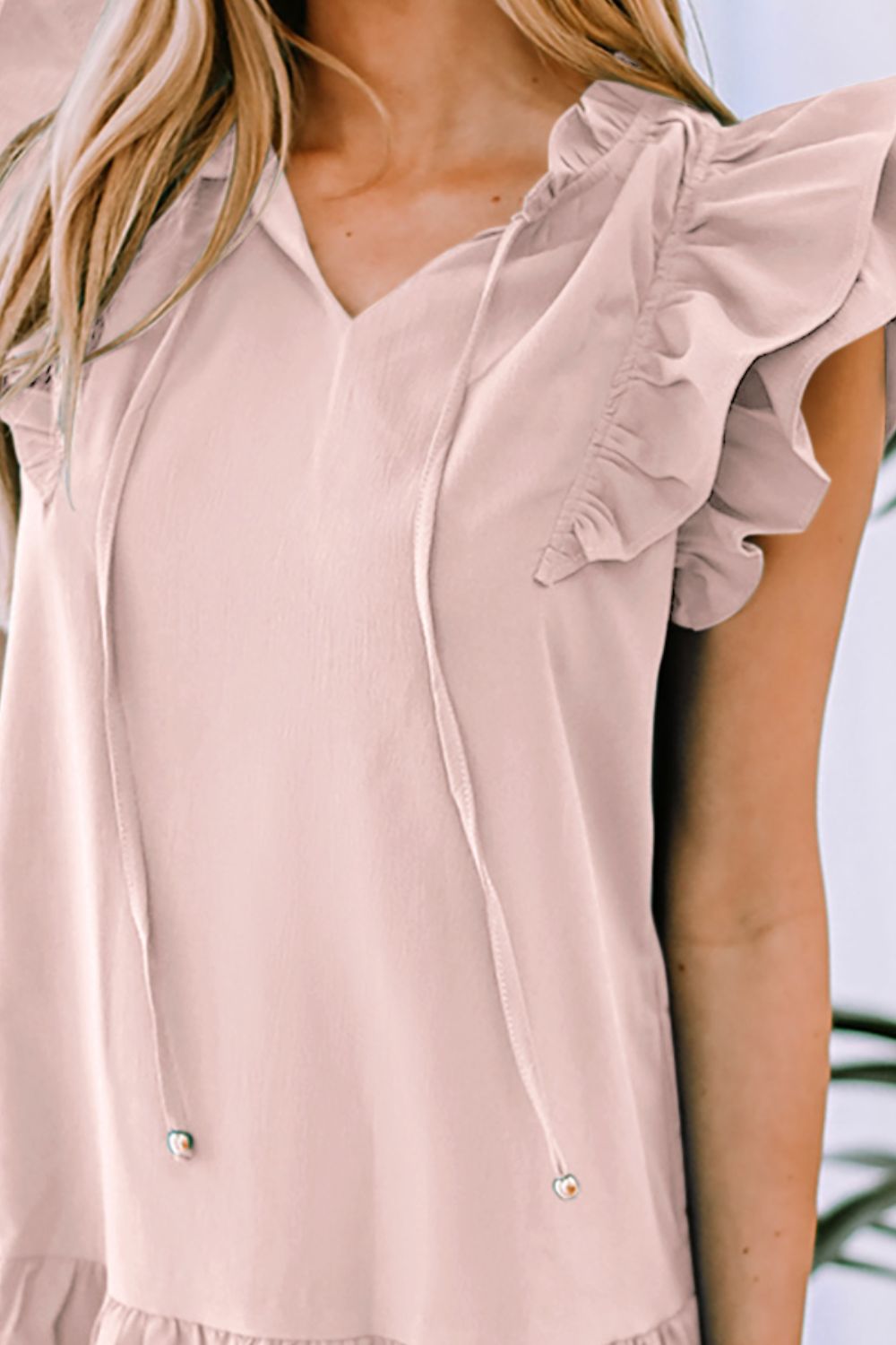 Ruffle Shoulder Tie-Neck Tiered Dress