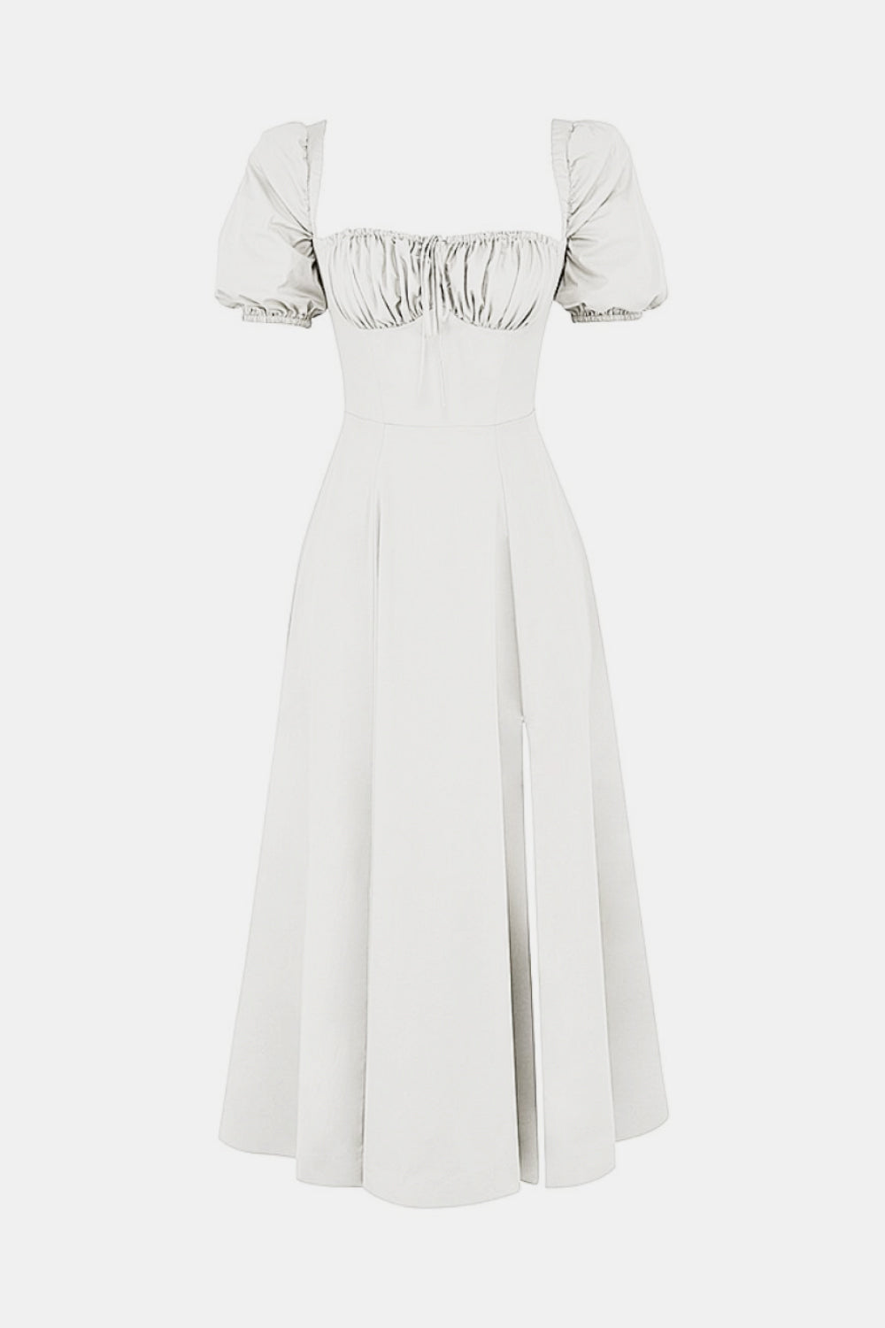 • Load image into Gallery viewer, Square Neck Tie Front Ruched Split Dress