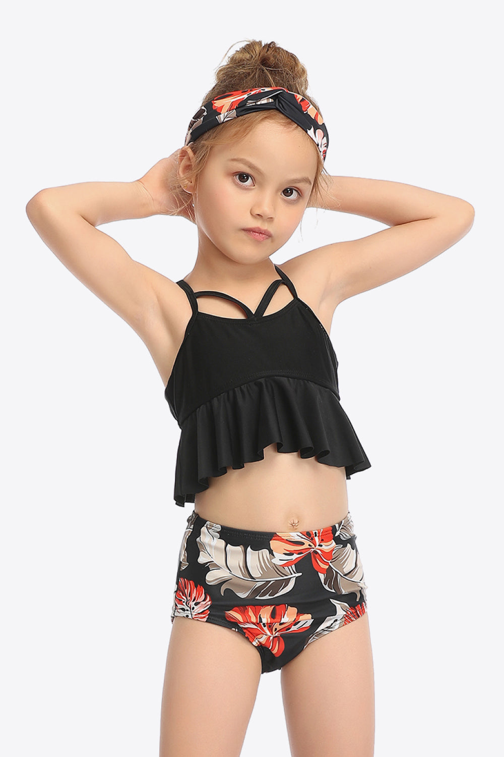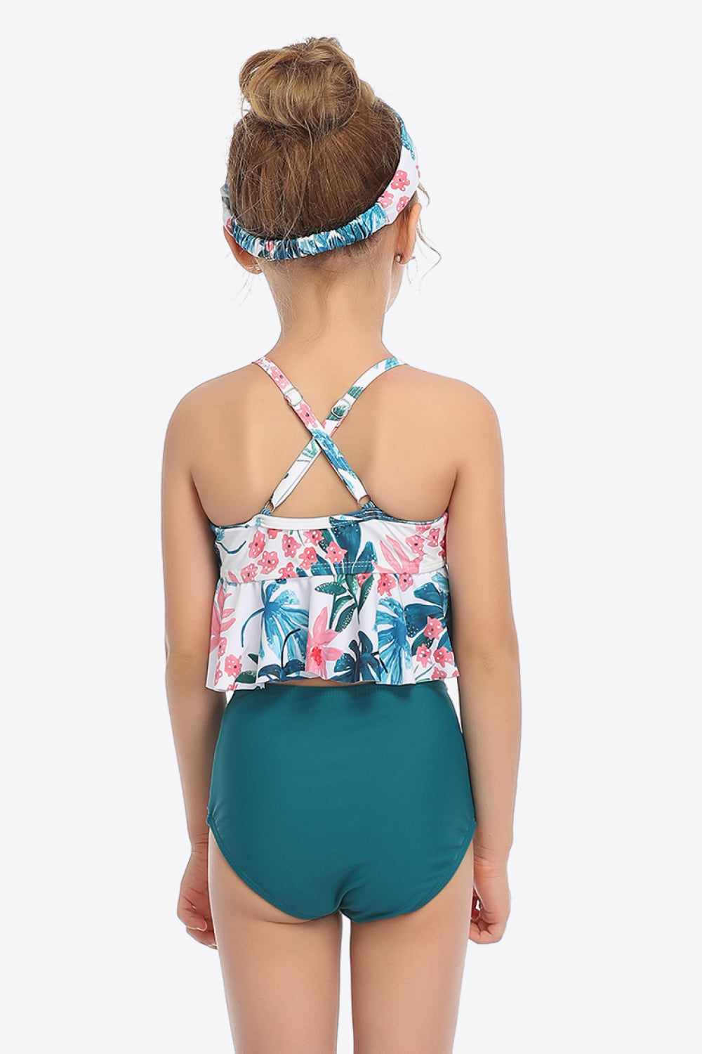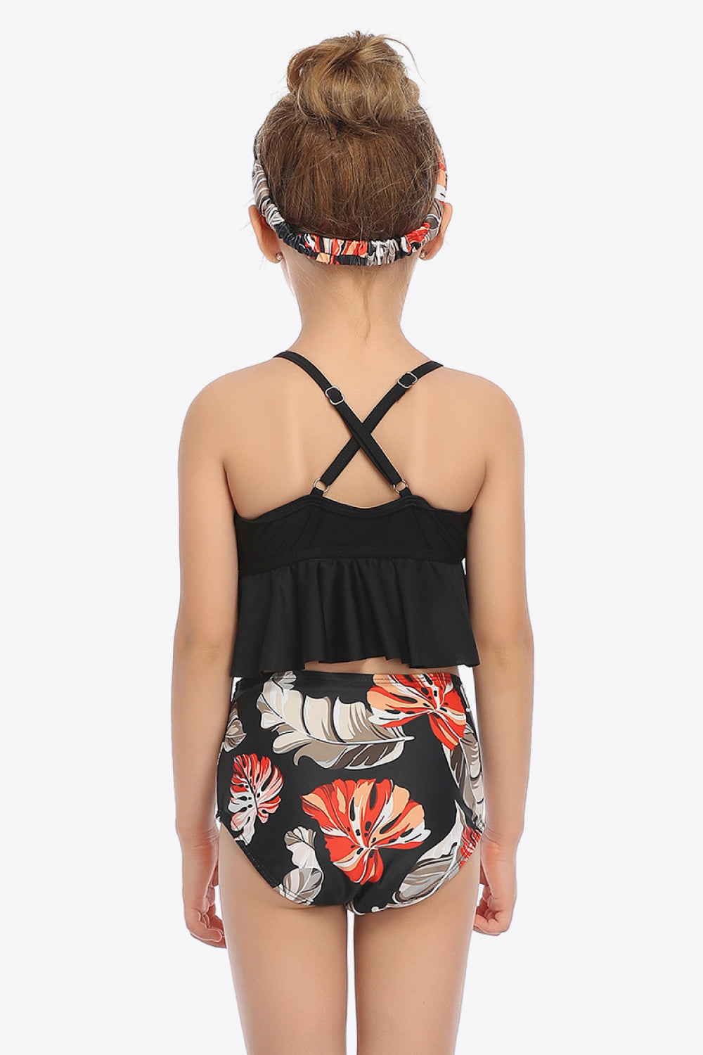 Botanical Print Crisscross Ruffled Two-Piece Swim Set