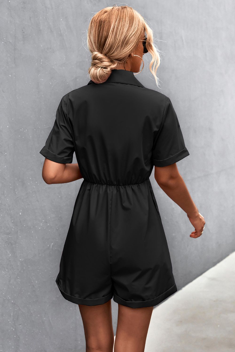 - Neckline: Collared neck