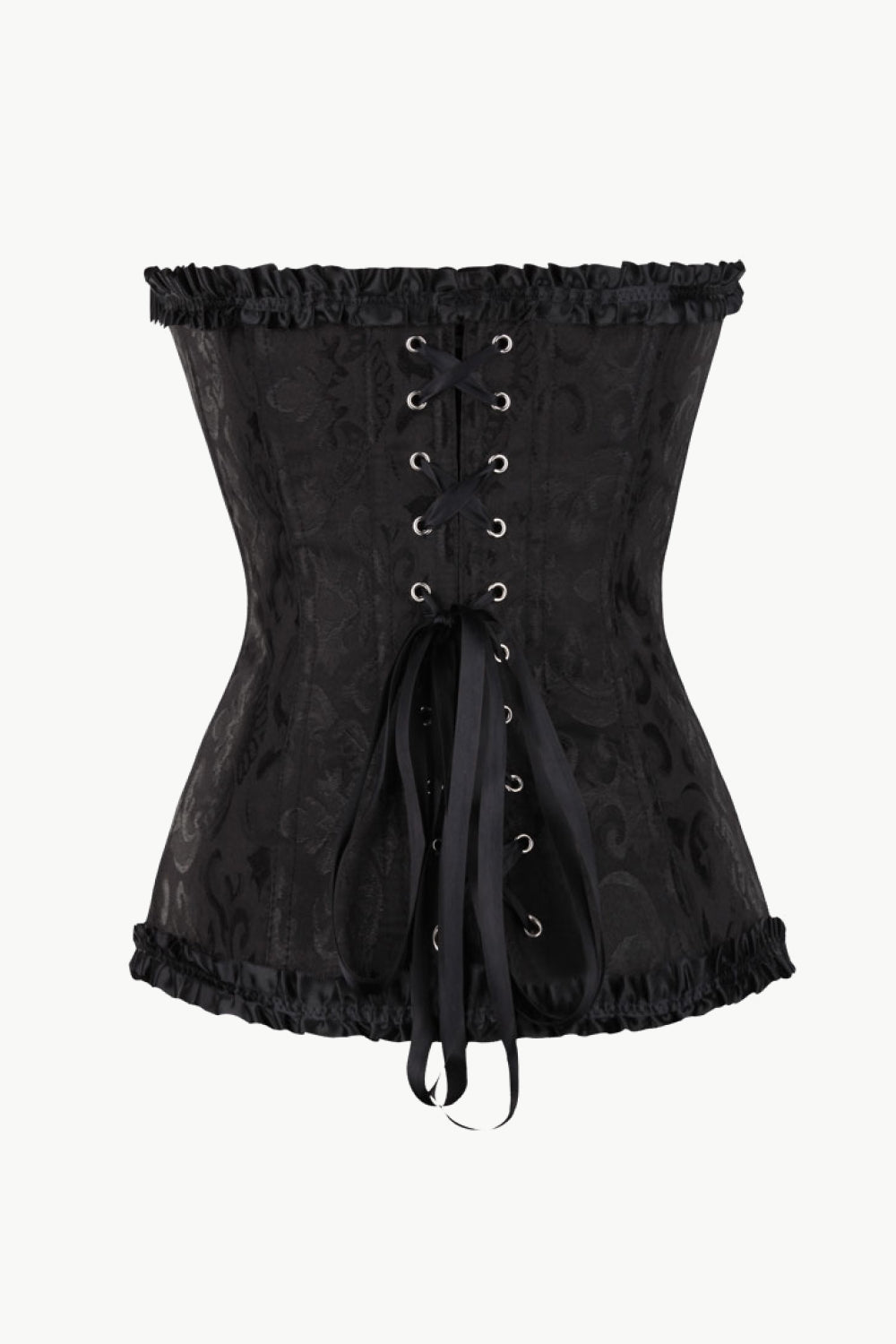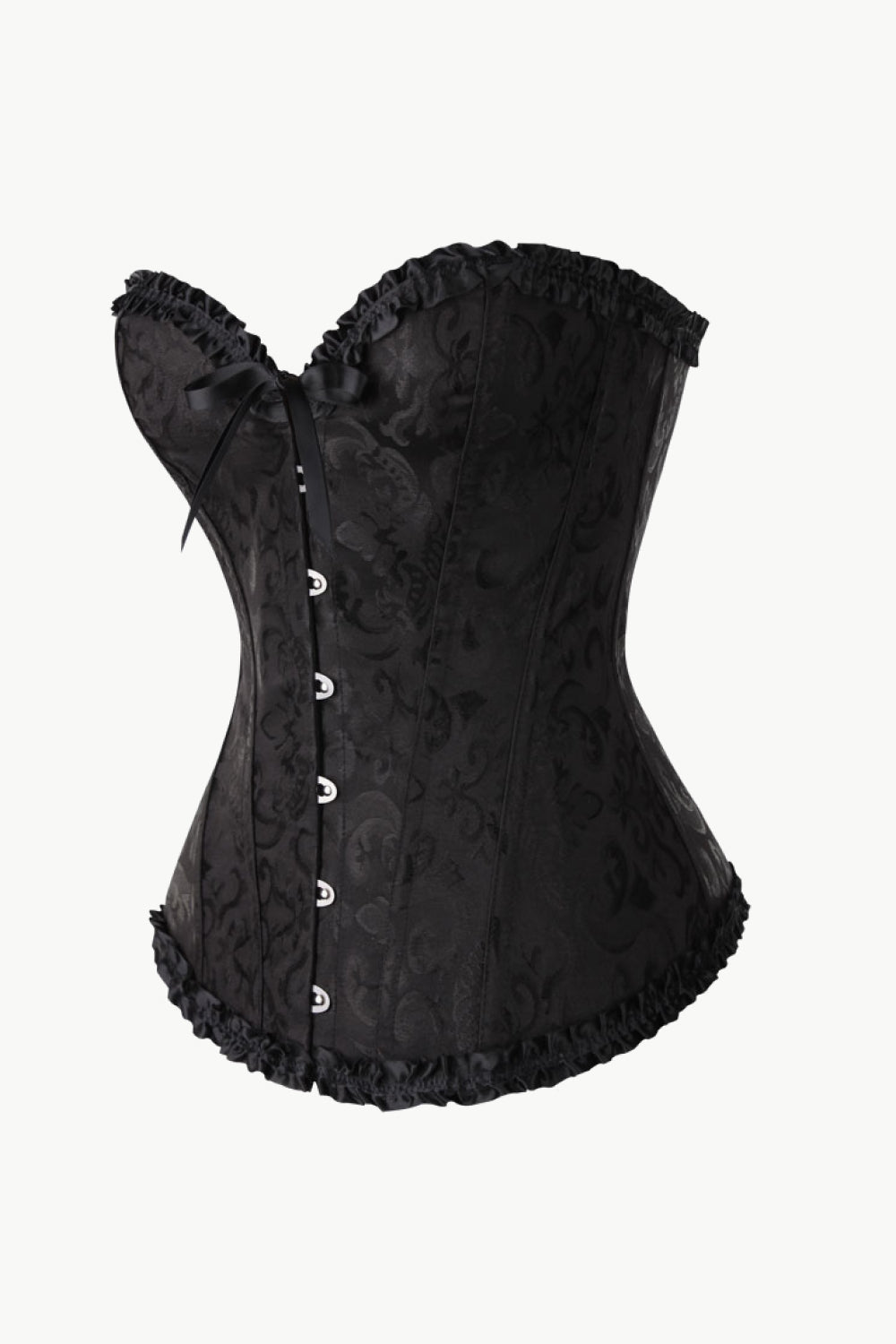 Full Size Jacquard Bow and Ruffle Trim Corset