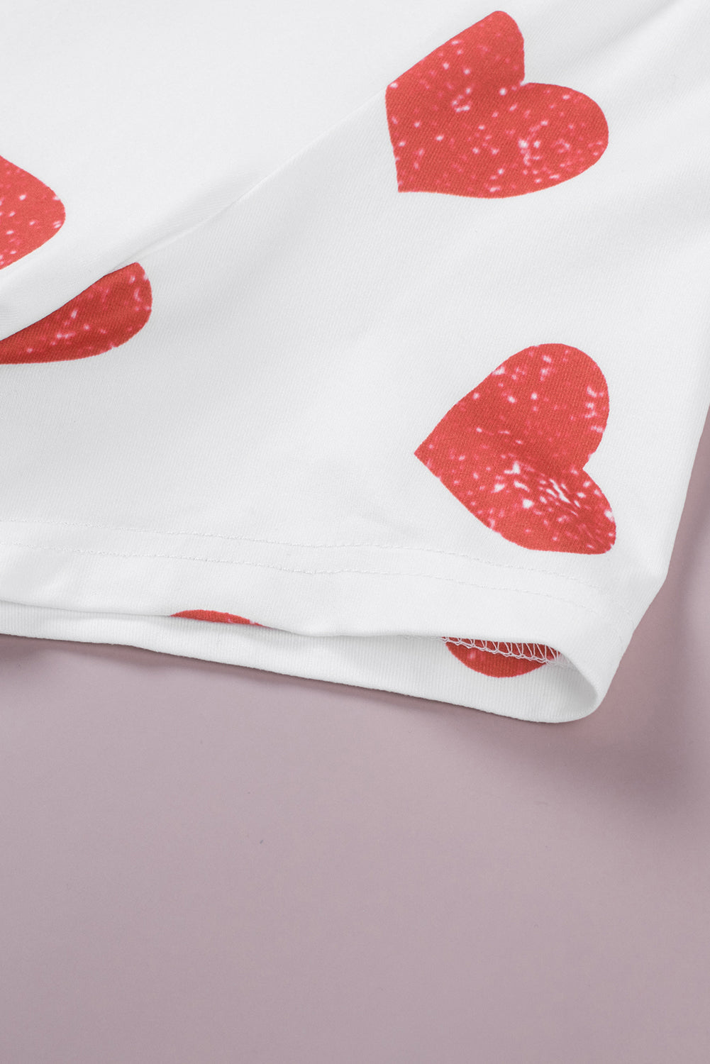 Heart Print Tee and Drawstring Shorts Loungewear Set