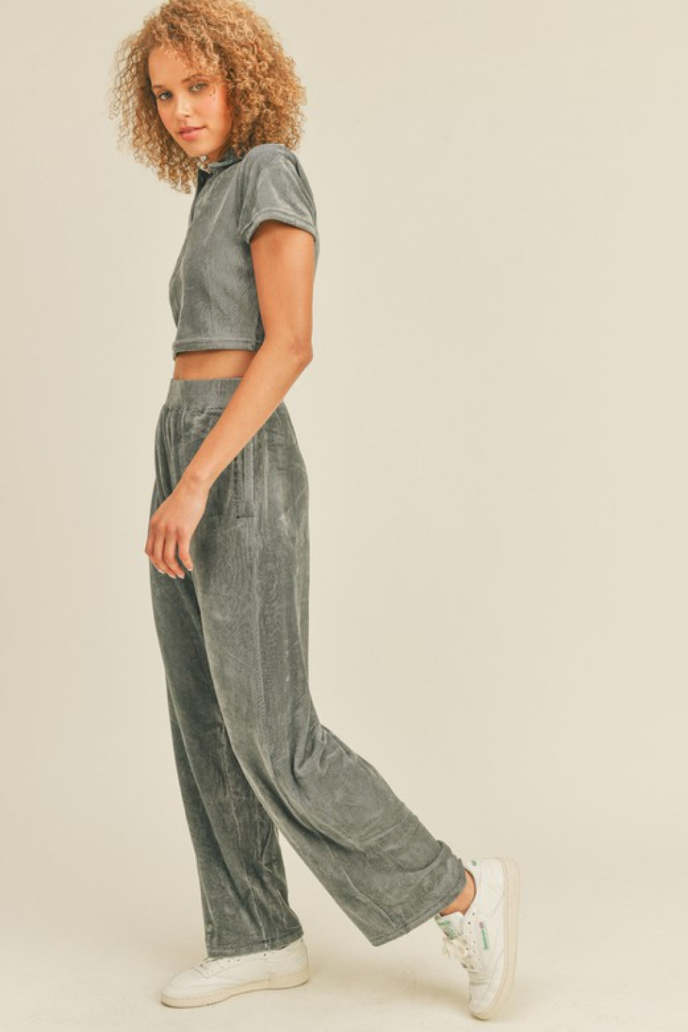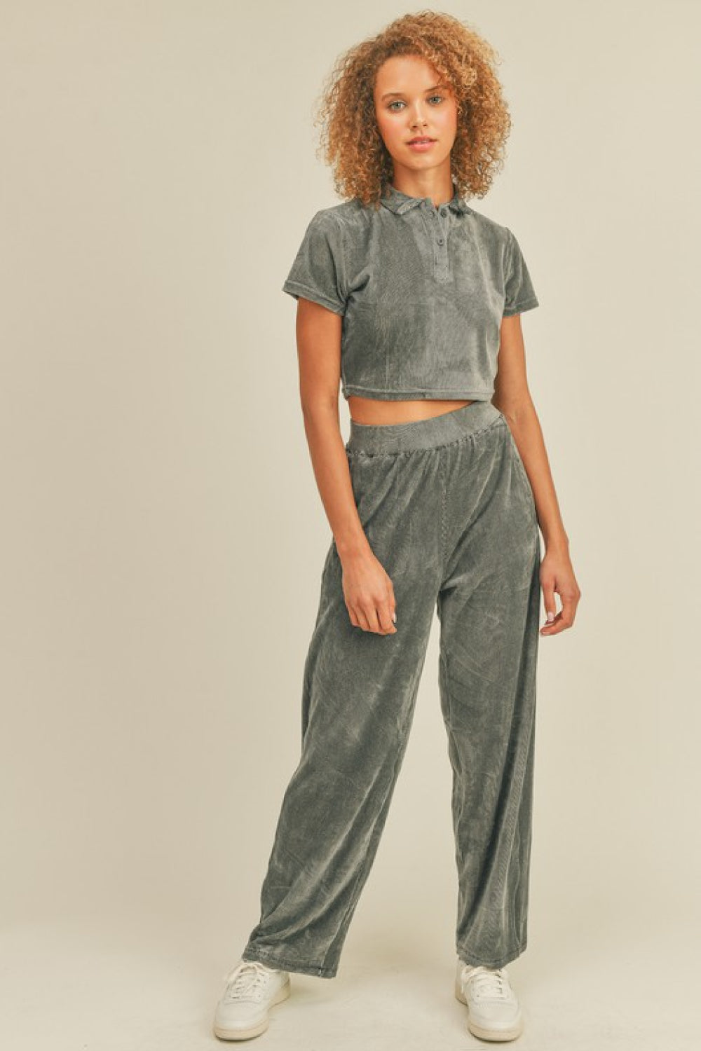 Kimberly C Full Size Cropped Polo Shirt and Wide Leg Pants Set
