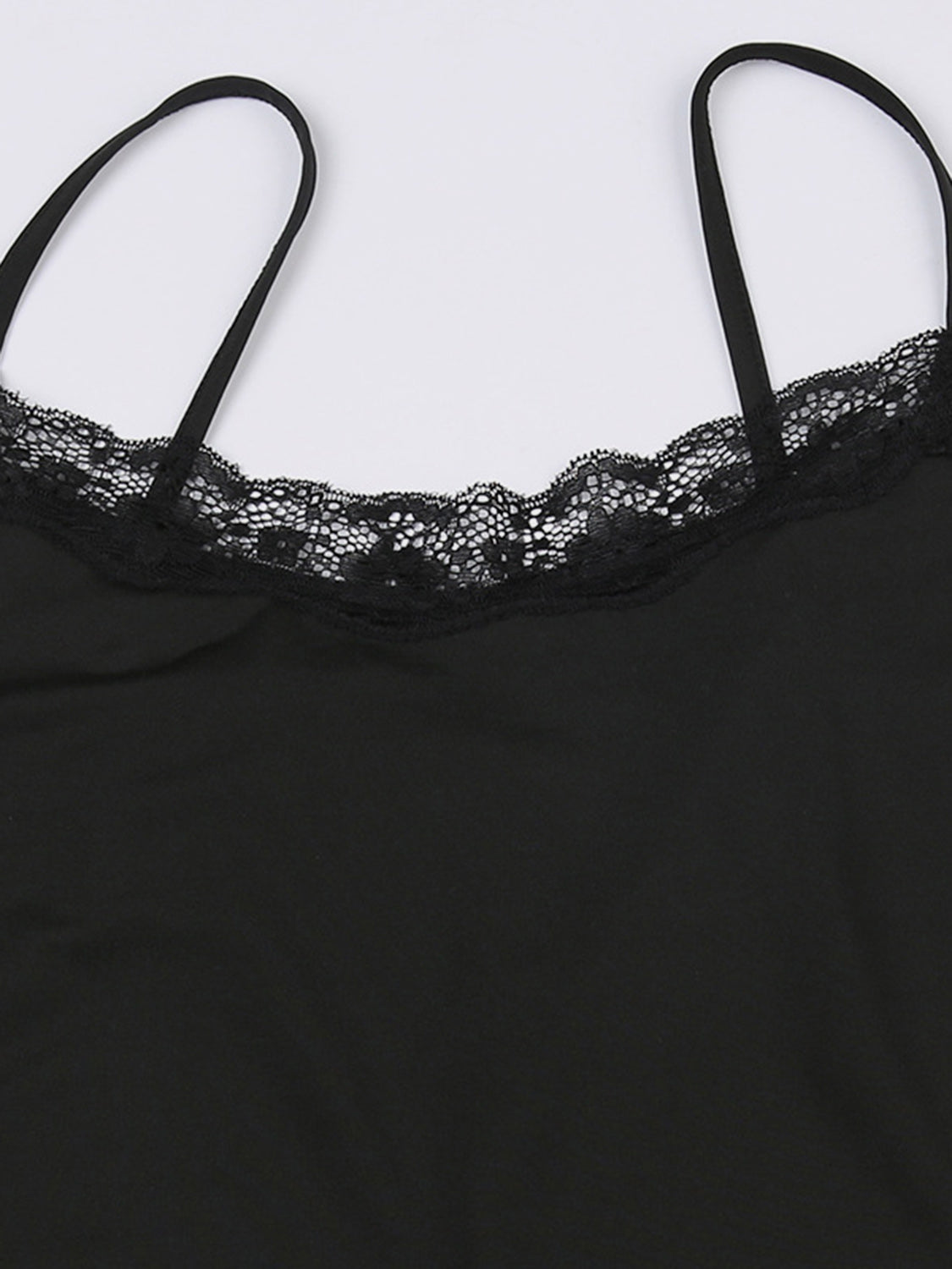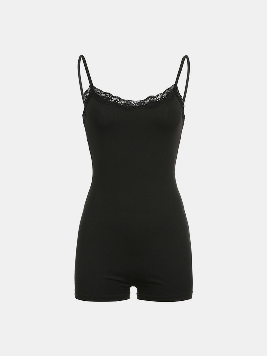 Lace Detail Scoop Neck Spaghetti Strap Romper