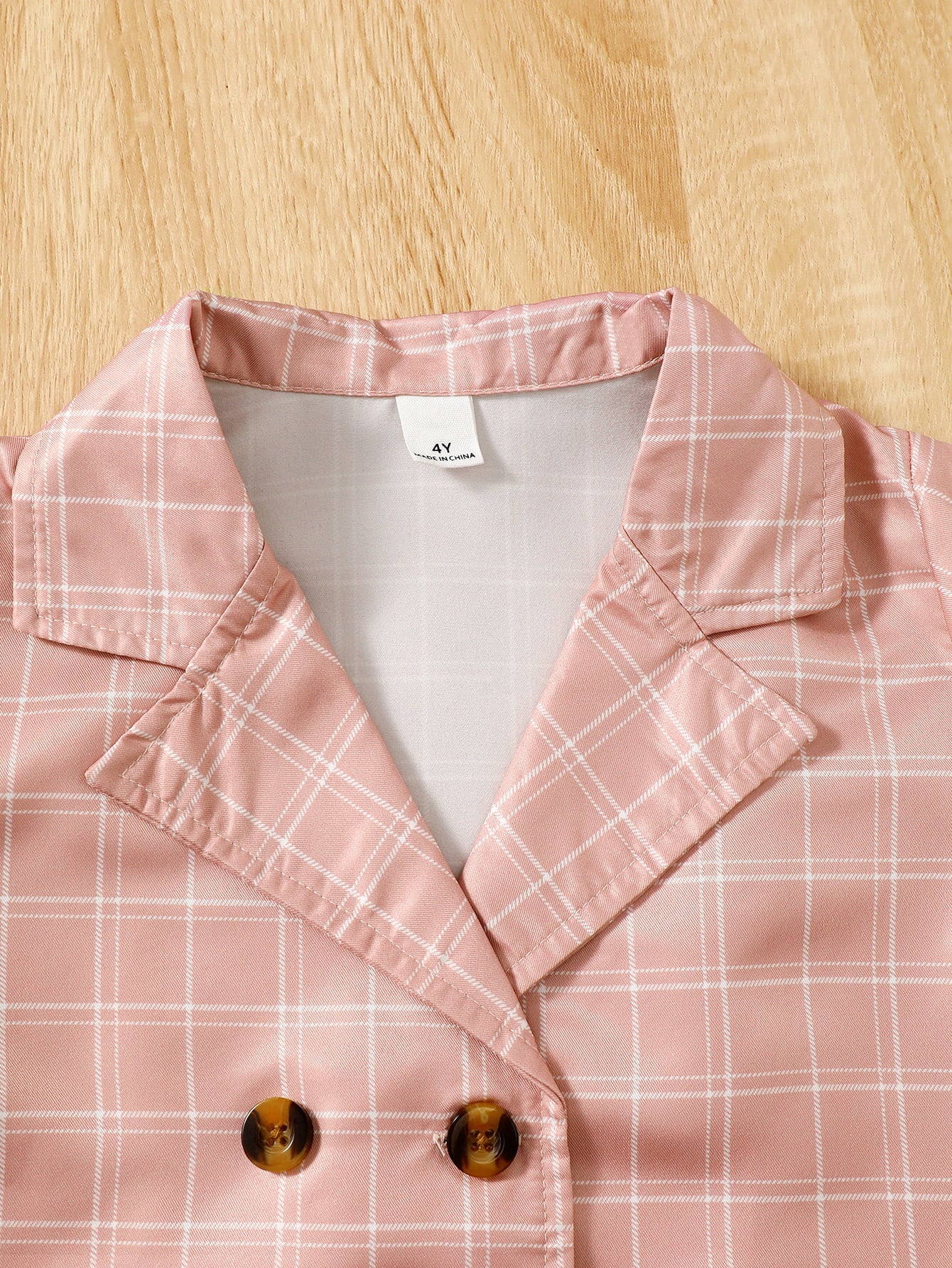 Plaid Double-Breasted Blazer, Cami, and Shorts Set
