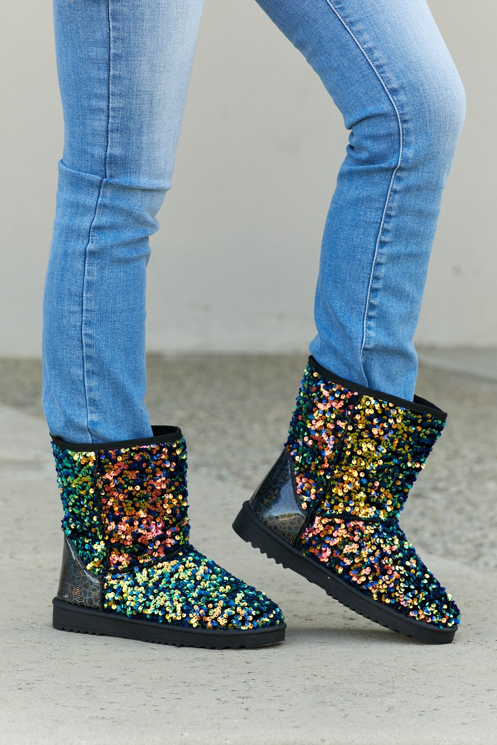 Comfort and pizzazz all in one? These slip-on boots will keep your toes warm in winter, but will also bring out your inner child with their multicolored sequins!