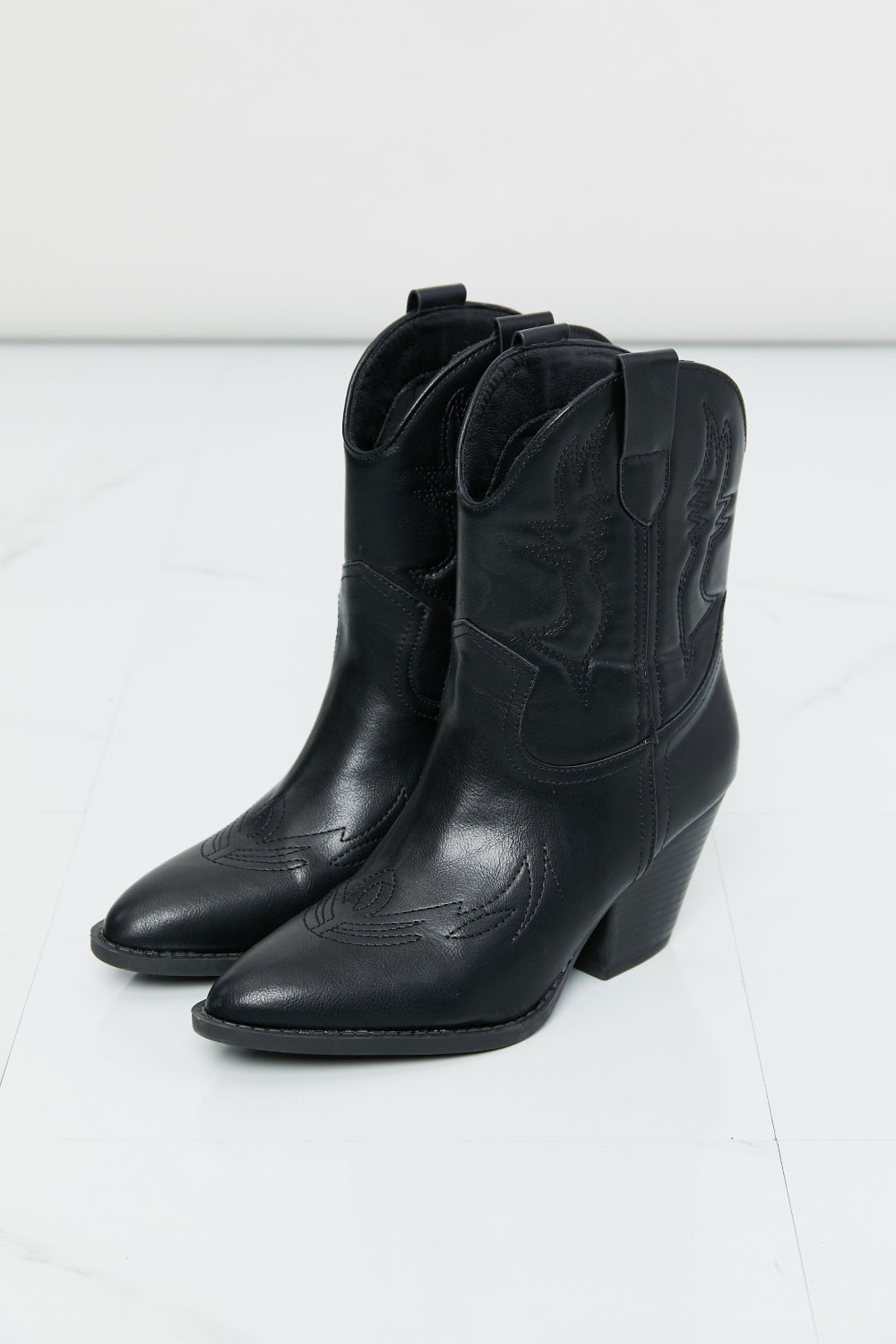 You can stand out from the crowd in these stylish boots. The block heel height is a practical choice for many occasions, and the soft faux leather upper is comfortable to wear!