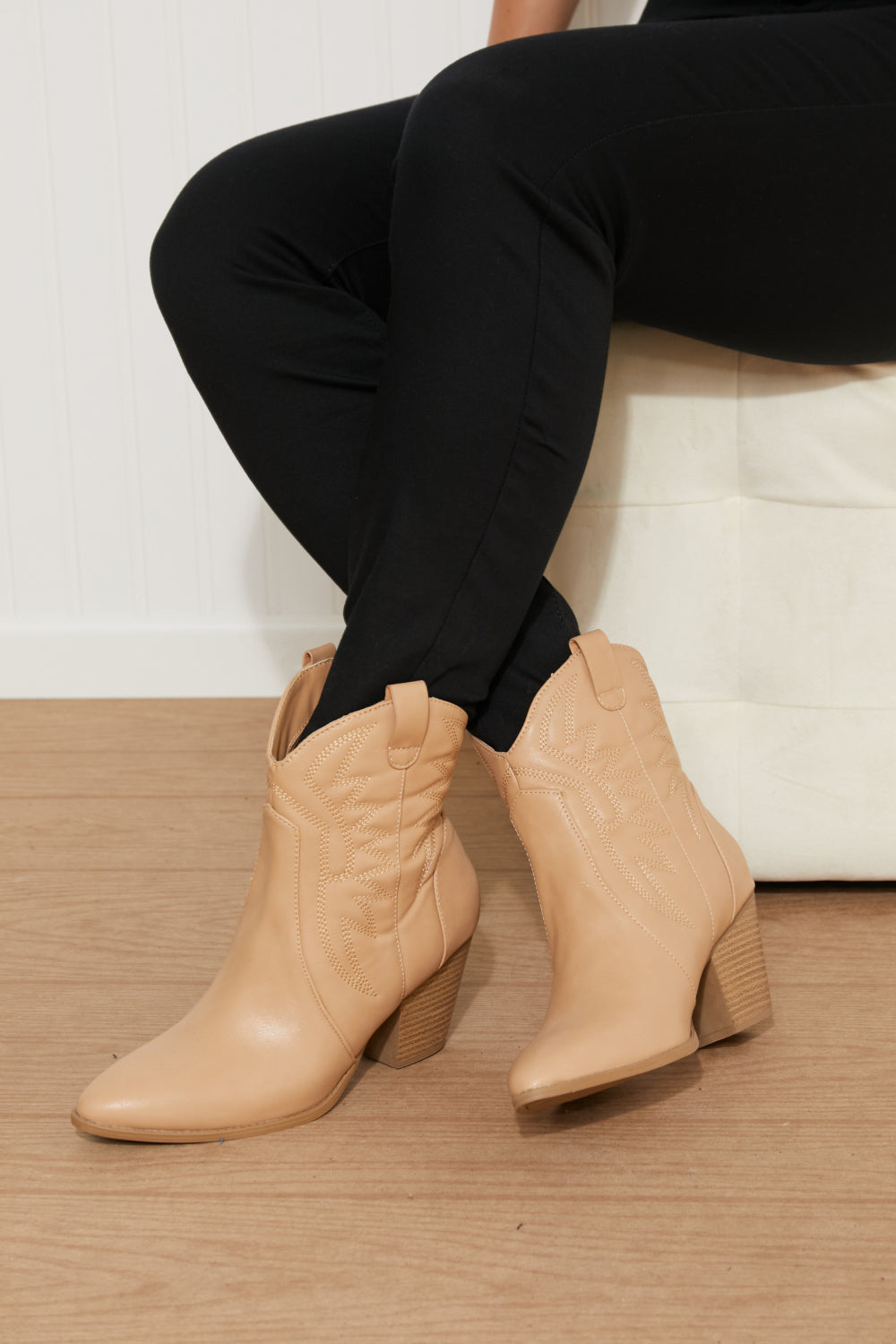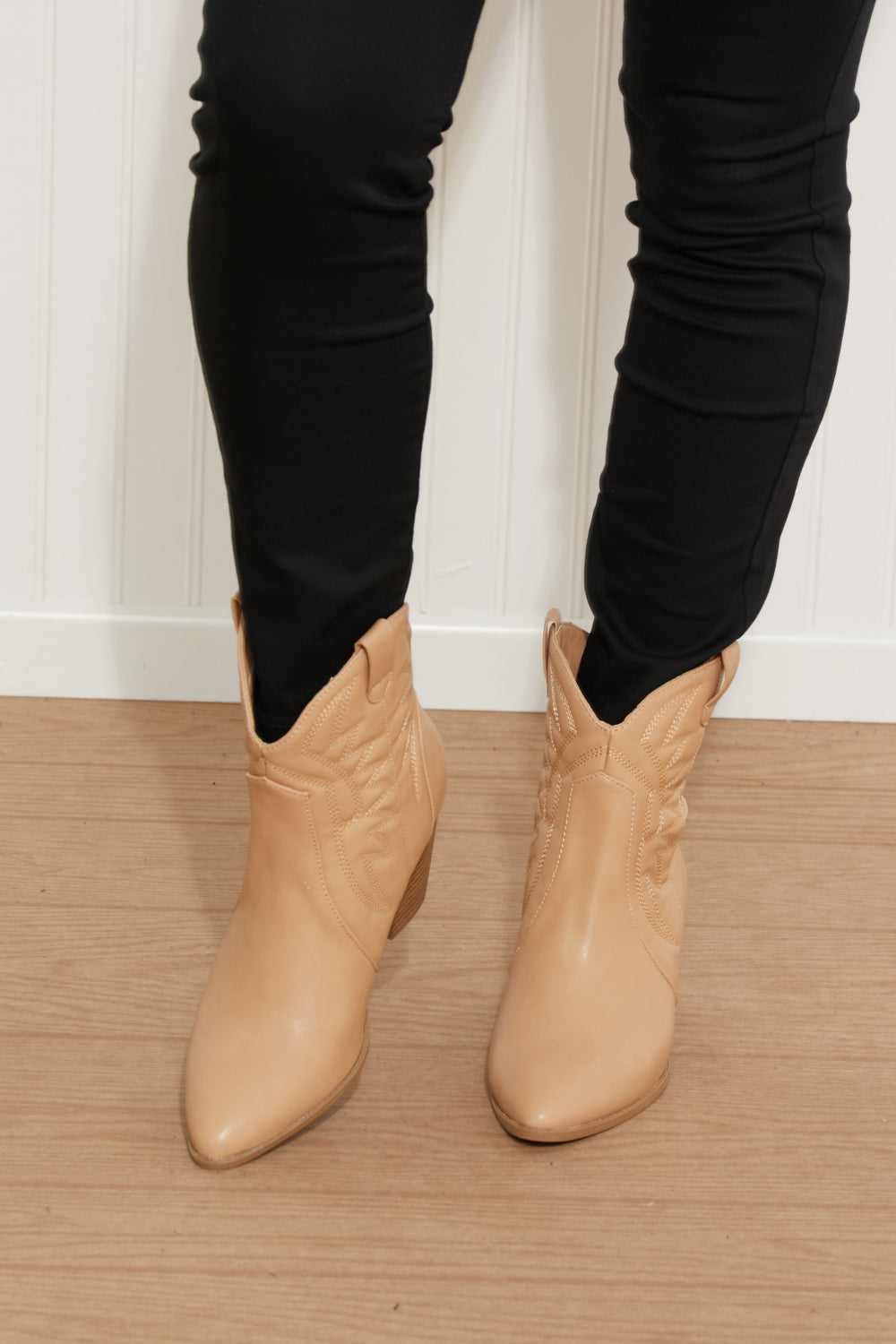 These cowboy booties are what dreams are made of! Shiny vegan leather constructs these boots into a structured and timeless shape that will make all your 'fits a little more Western.
