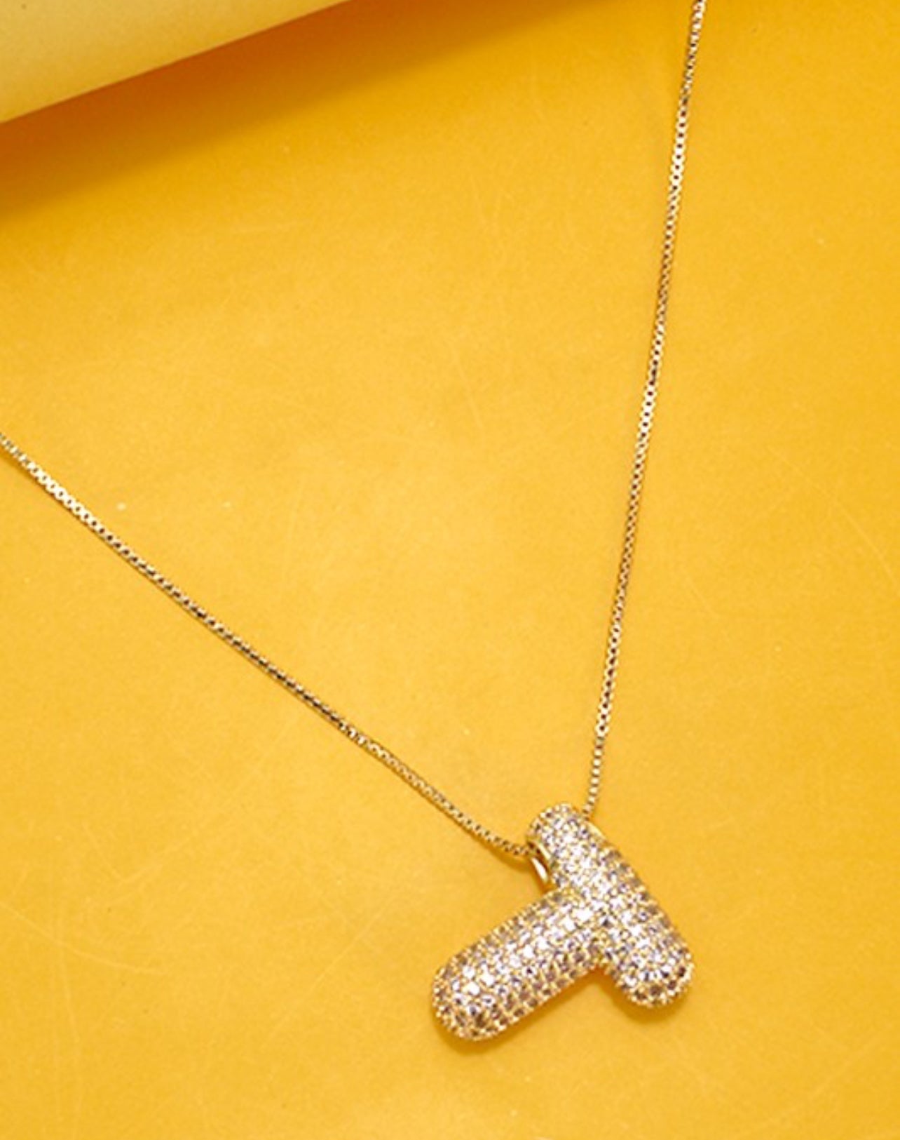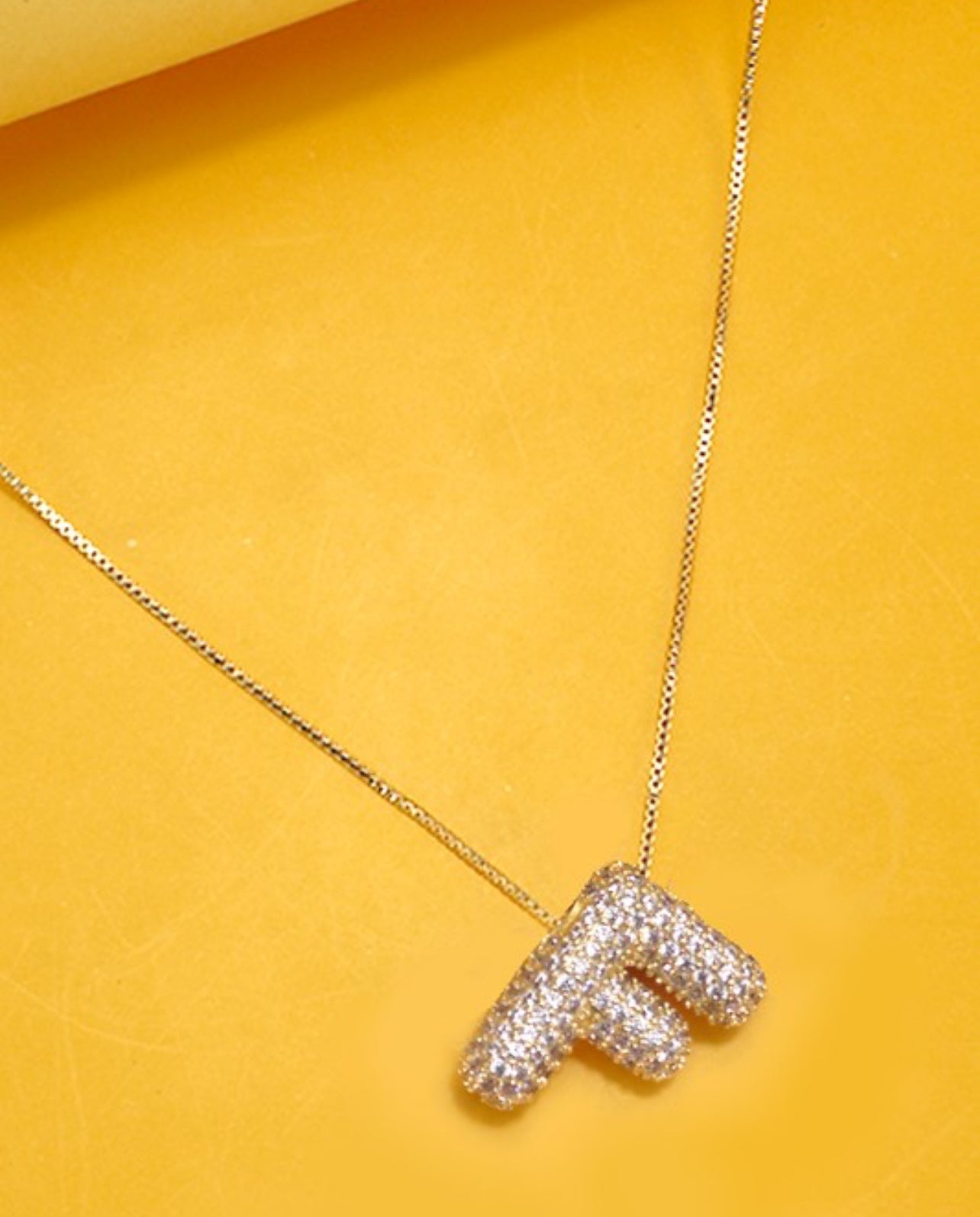 INITIAL PAVE RHINESTONE BUBBLE BALLOON NECKLACE