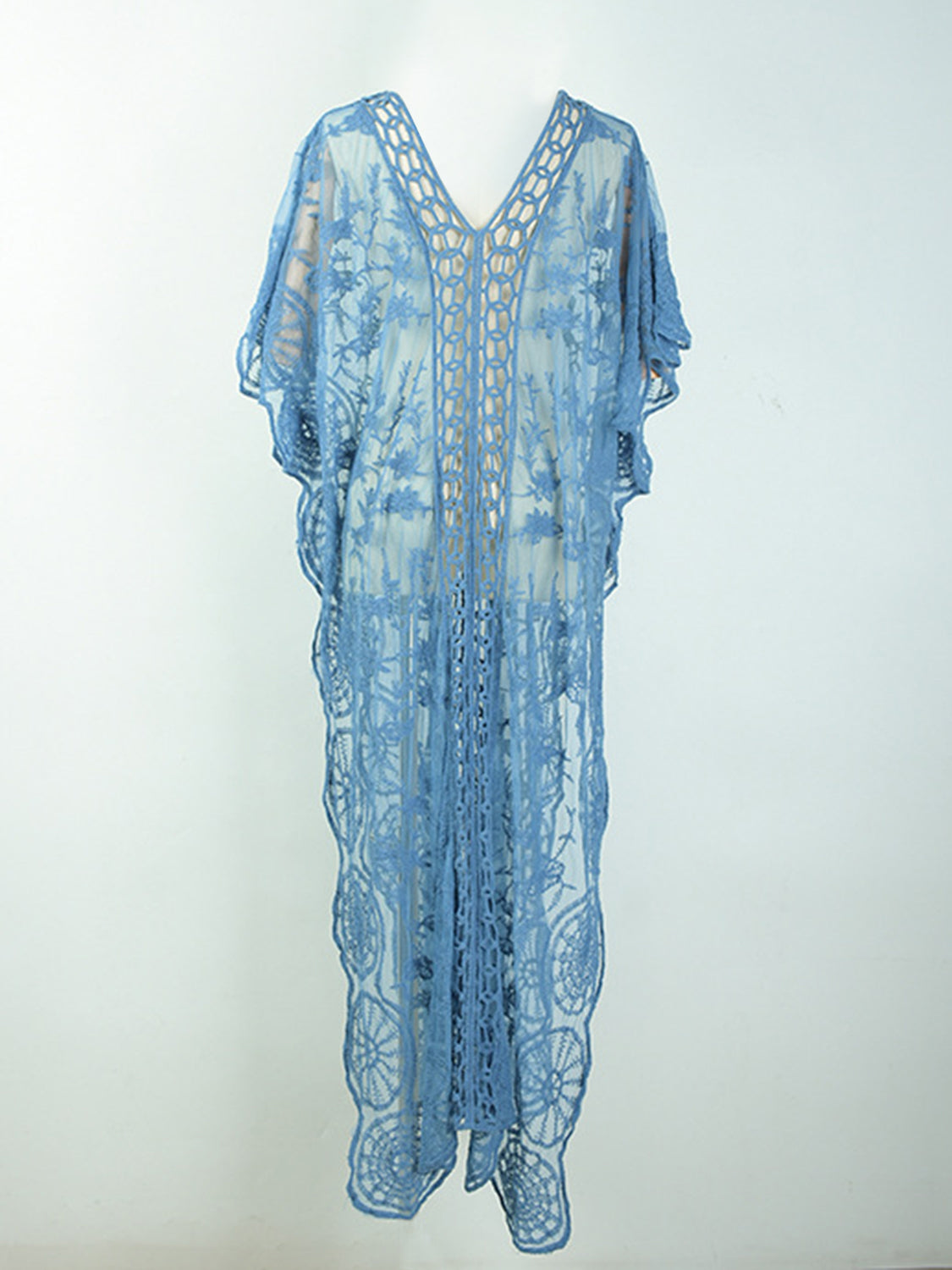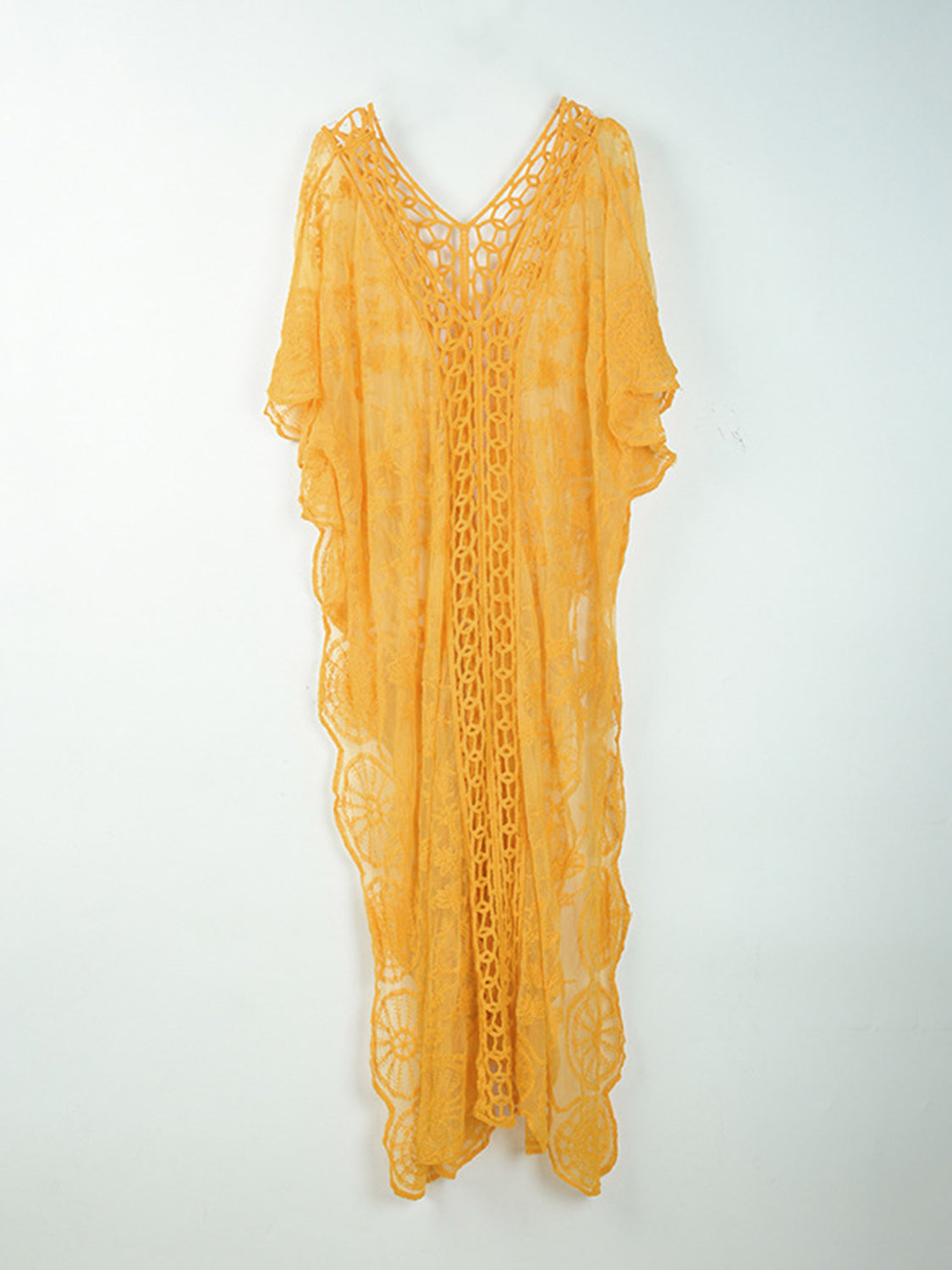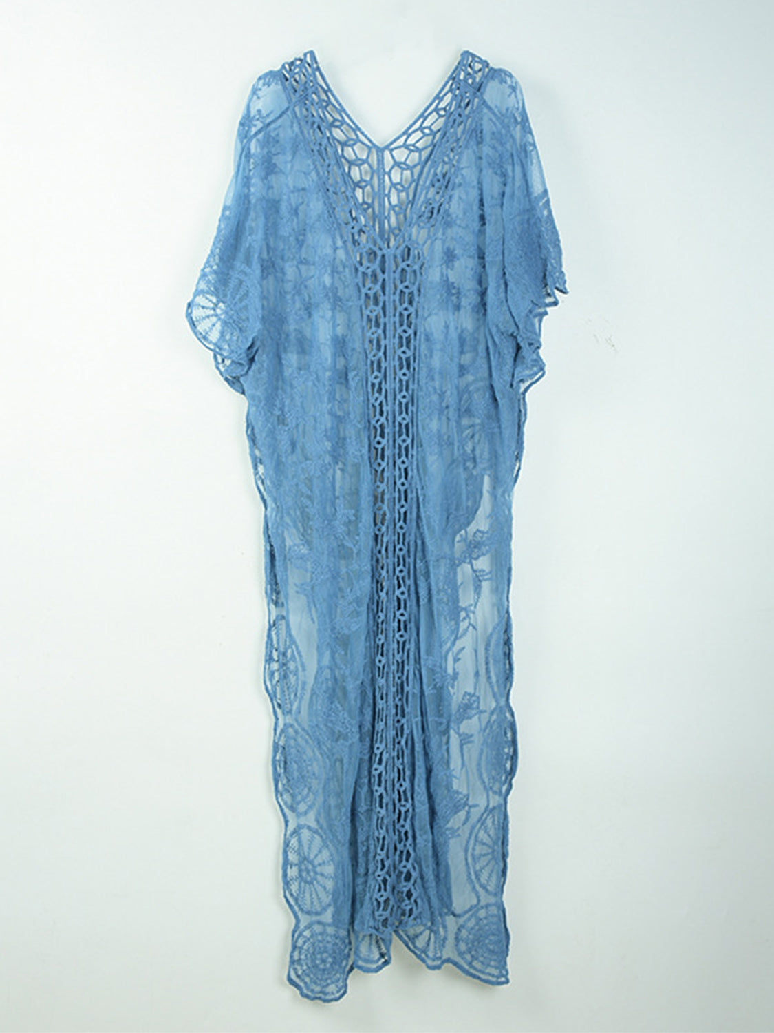 Openwork Slit V-Neck Half Sleeve Cover-Up