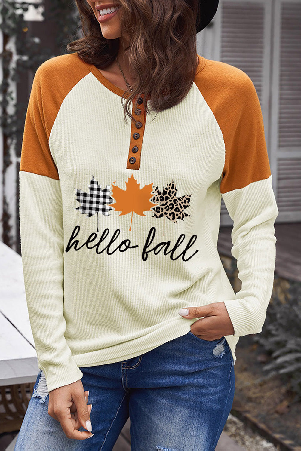 Simply Love HELLO FALL Graphic Raglan Sleeve Henley Top
