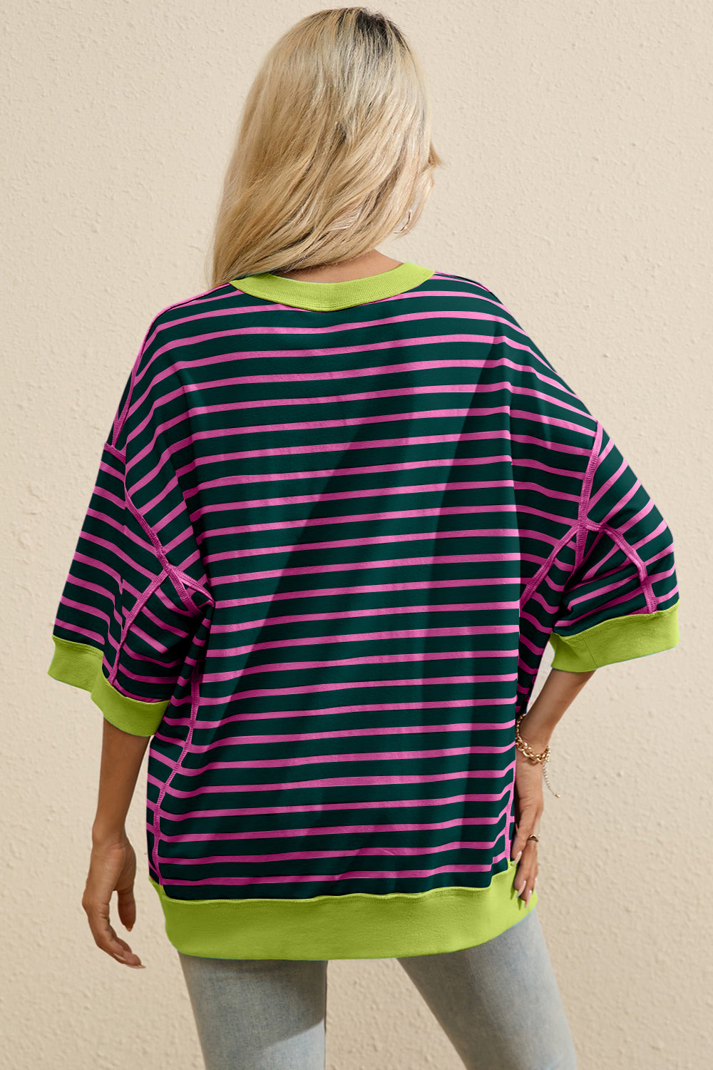 • Load image into Gallery viewer, Striped Round Neck Half Sleeve T-Shirt
