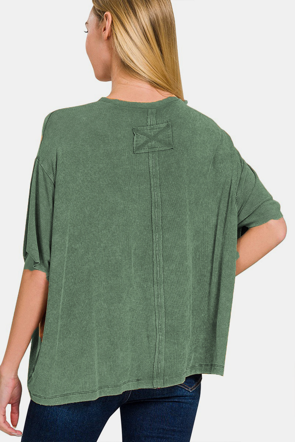 The ribbed round neck drop shoulder T-shirt is a stylish and comfortable wardrobe essential. Featuring a ribbed texture, round neckline, and drop shoulder design, this T-shirt offers a relaxed yet chic look. The drop shoulder style adds a casual and laid-back vibe to the classic T-shirt silhouette. Perfect for pairing with jeans or shorts, this versatile piece can be easily dressed up or down for various occasions. Embrace casual elegance with the ribbed round neck drop shoulder T-shirt, a versatile and timeless top for everyday wear. Elevate your wardrobe with this stylish T-shirt that brings together comfort and fashion effortlessly.