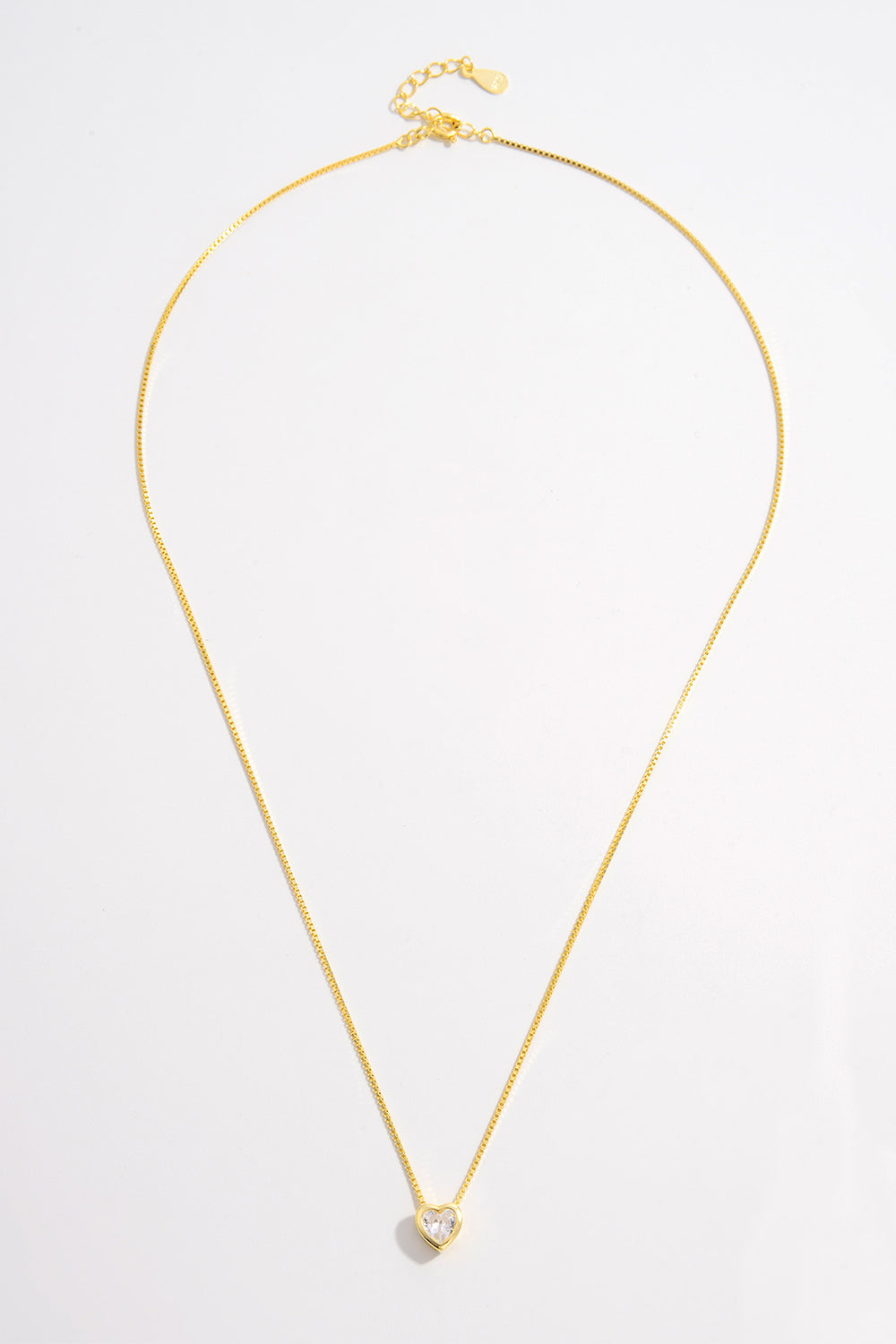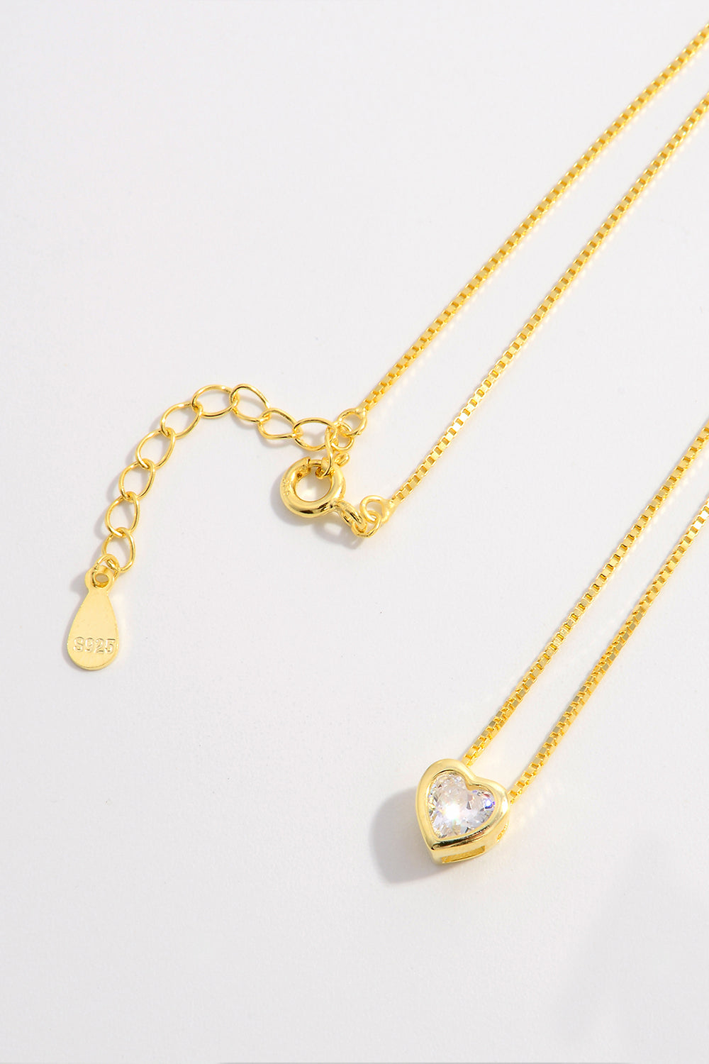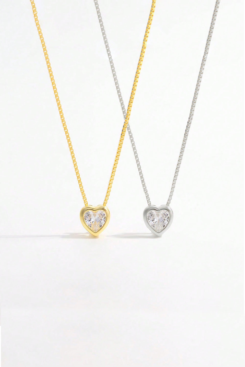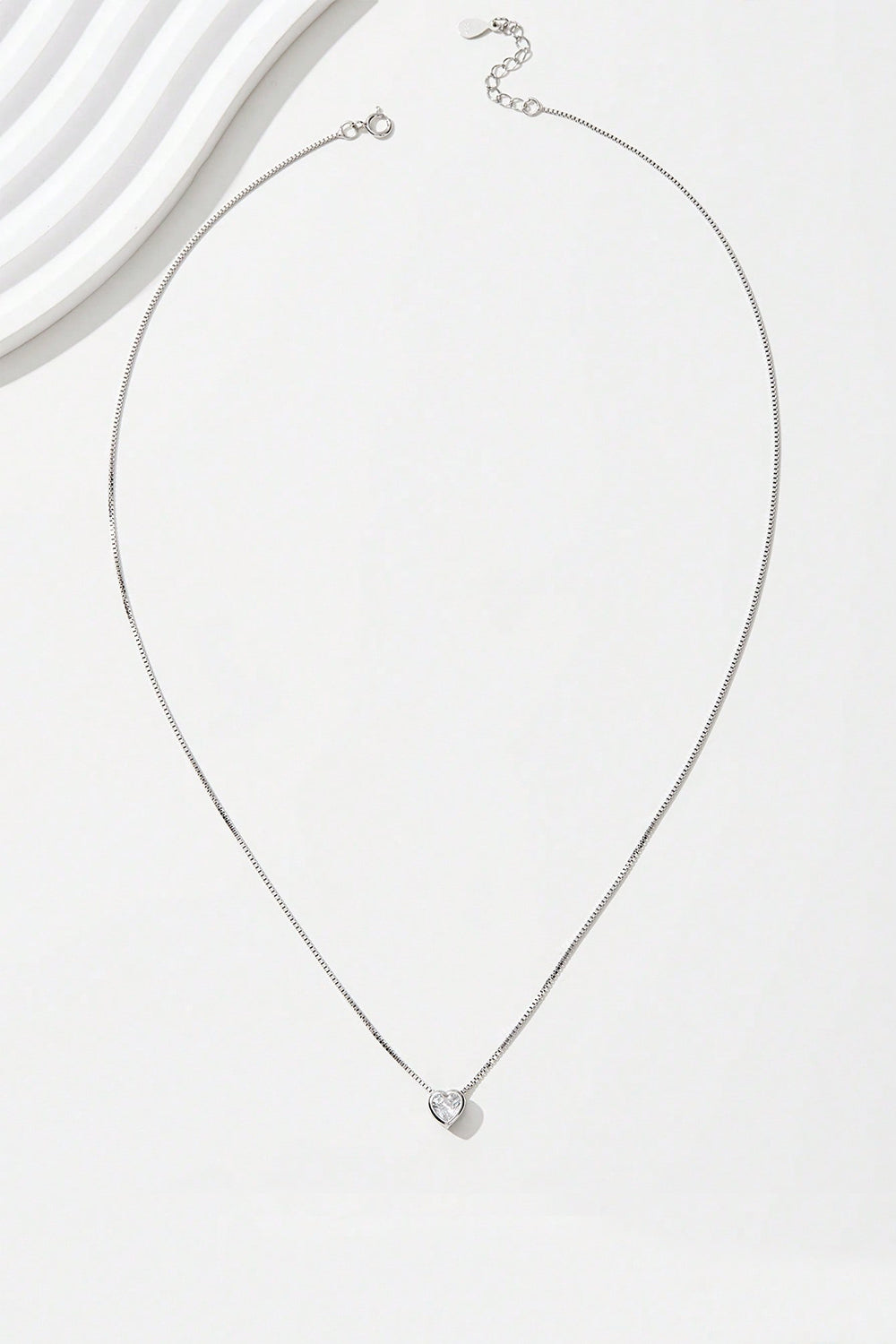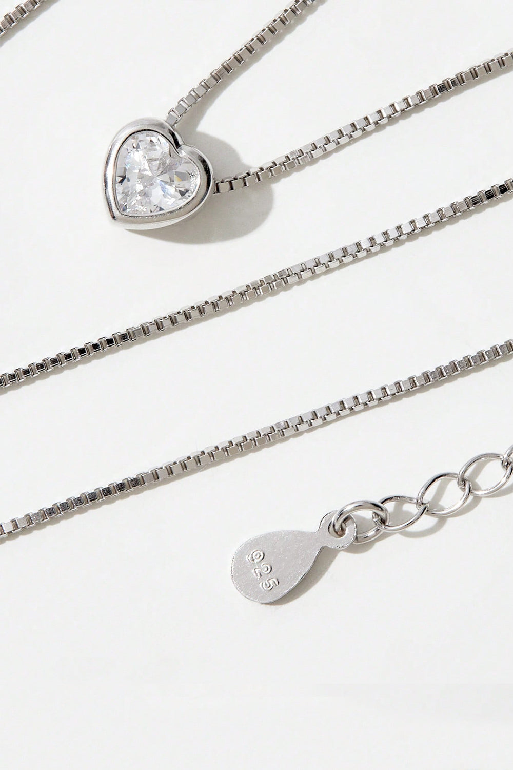 925 Sterling Silver Inlaid Zircon Heart Pendant Necklace