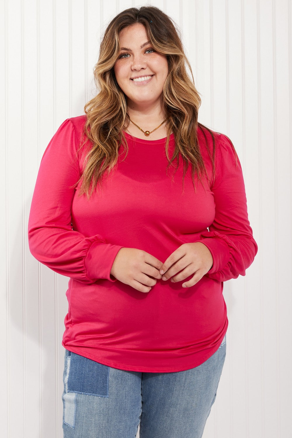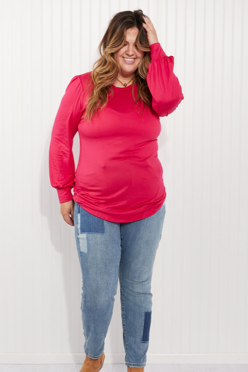 This soft and comfortable top is the ultimate wardrobe staple. The easy fit, simple style, and playful balloon sleeve details make this a fun piece to wear on its own or layered with a sweater or vest.
