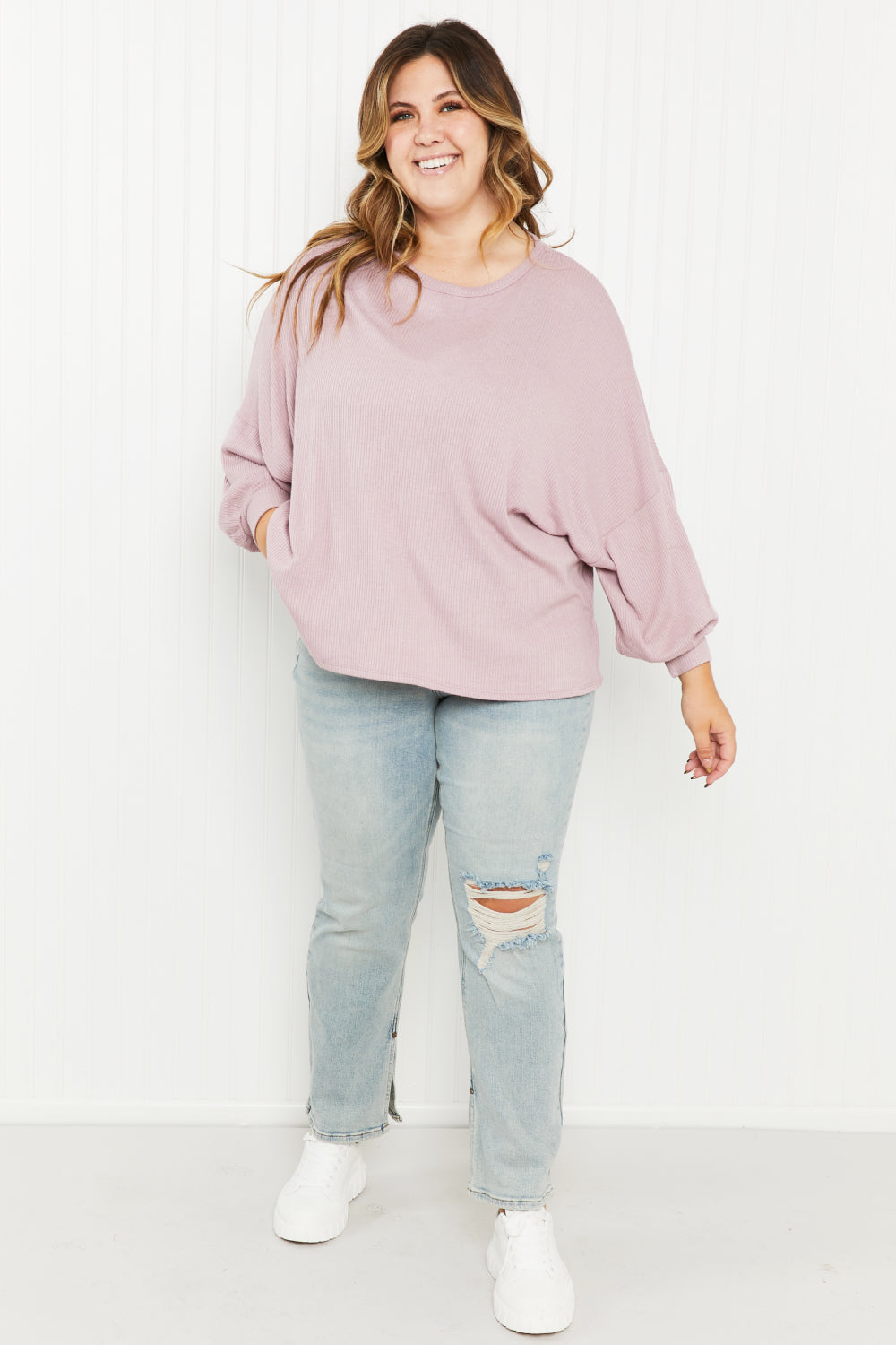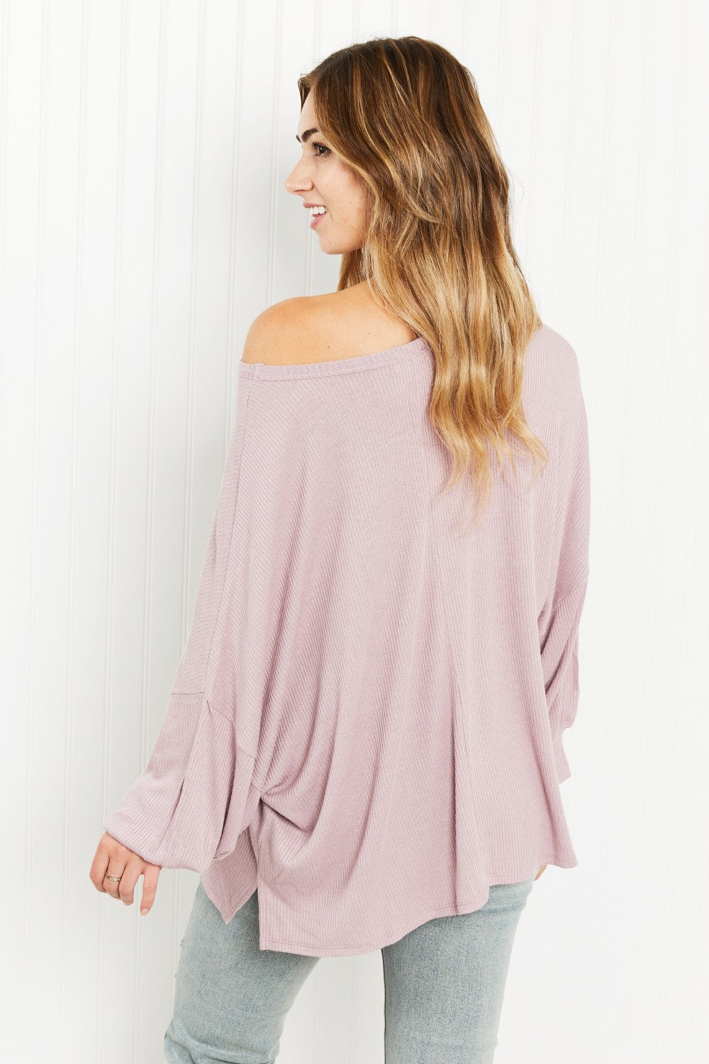Stay comfy and cozy in this slouchy, oversized top! Exaggerated dropped shoulders give this basic top a loose fit, making it perfect for lounging at home or busy days around town! In addition, the top features ribbing, lots of stretch, and a side slit detail.