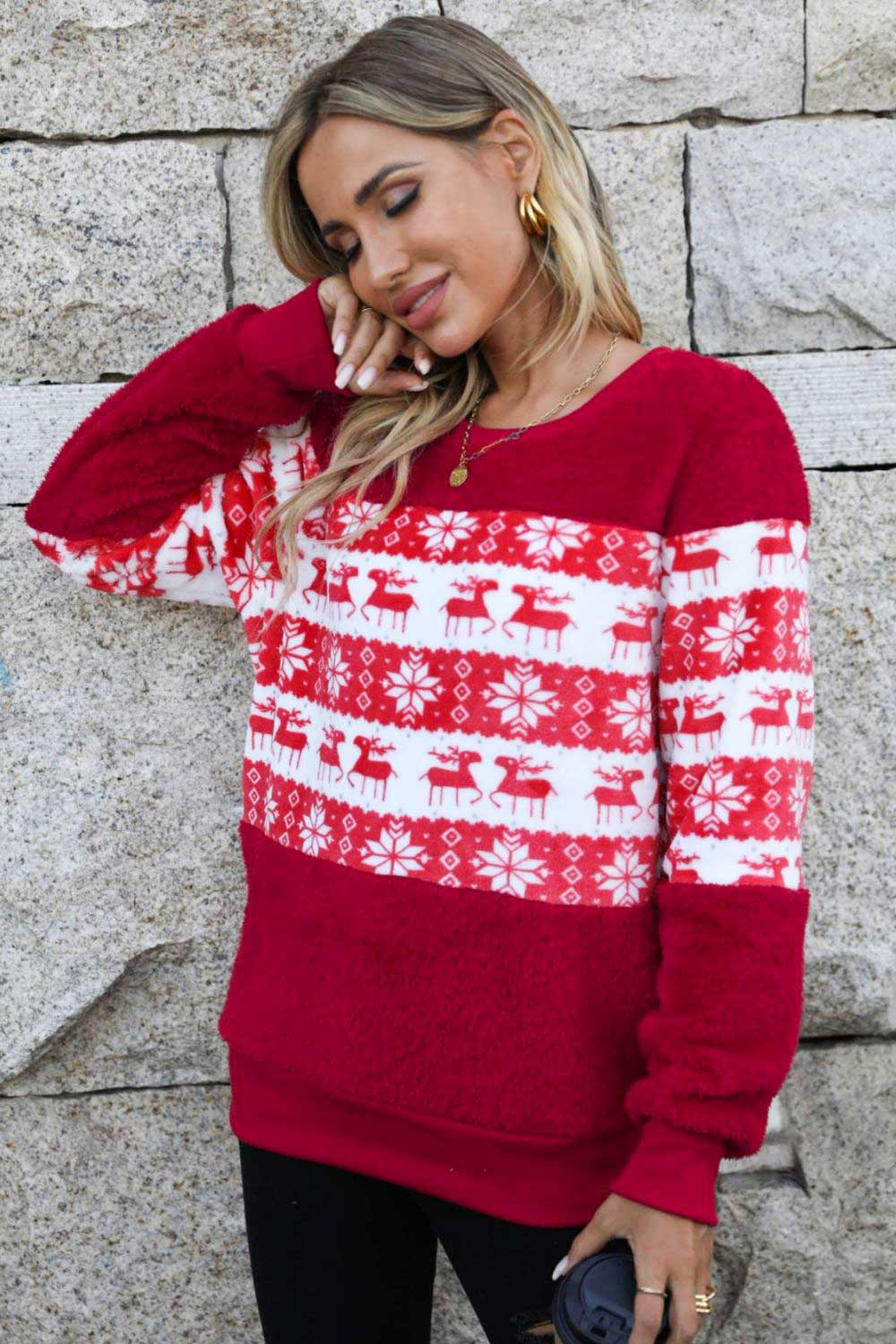 • Load image into Gallery viewer, Christmas Fair Isle Spliced Brushed Top