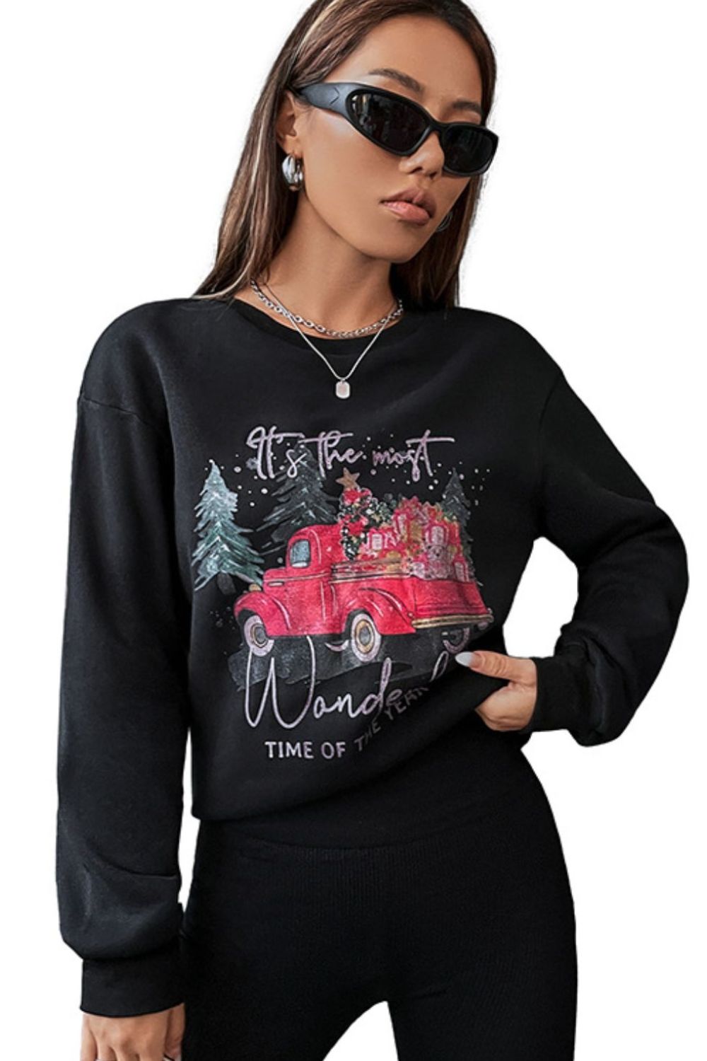 Christmas Graphic Round Neck Dropped Shoulder Sweatshirt