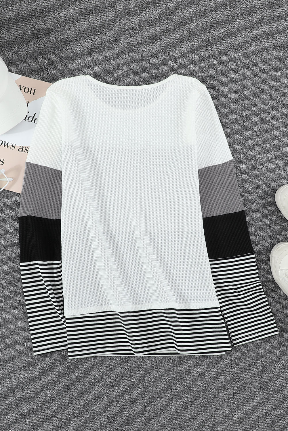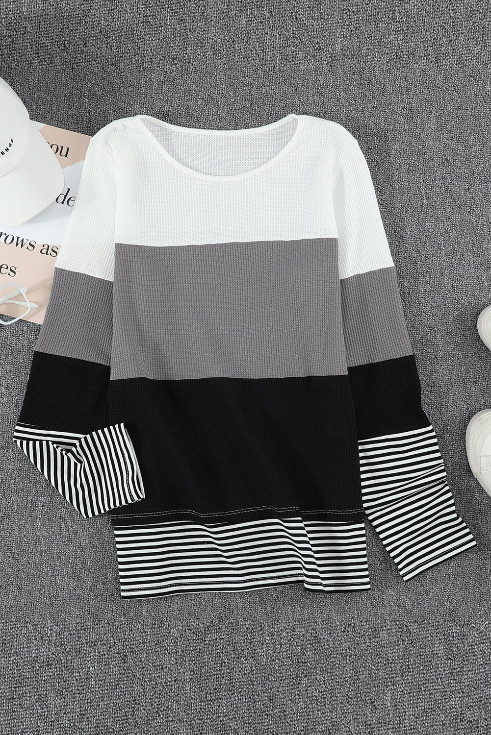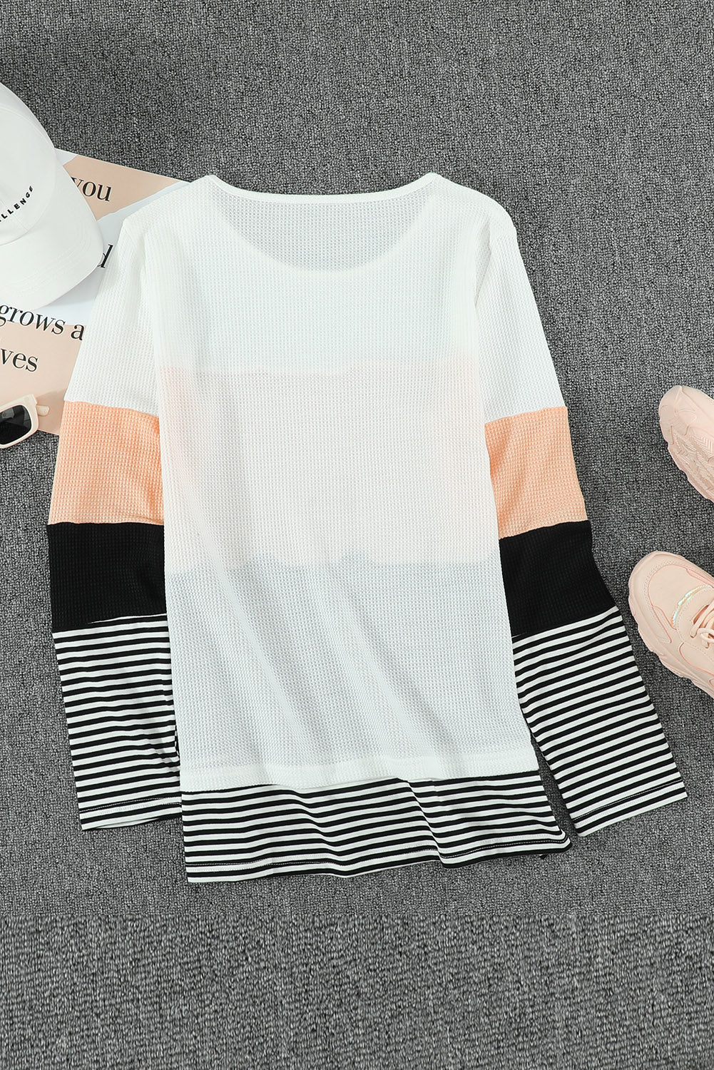 • Load image into Gallery viewer, Contrast Striped Print Color Block Top