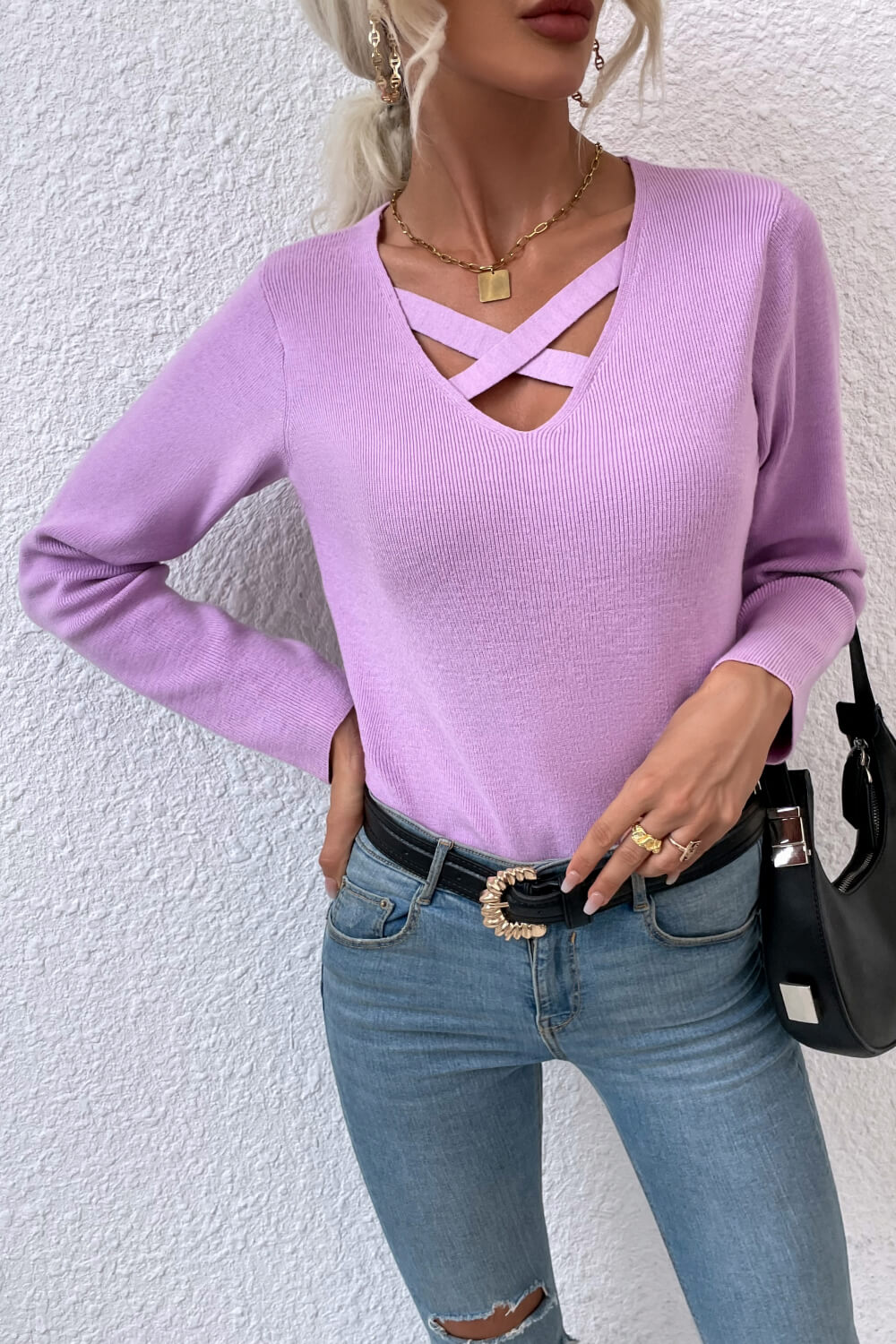 • Load image into Gallery viewer, Crisscross V-Neck Knit Top