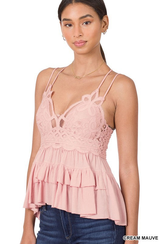 CROCHET LACE PEPLUM CAMI