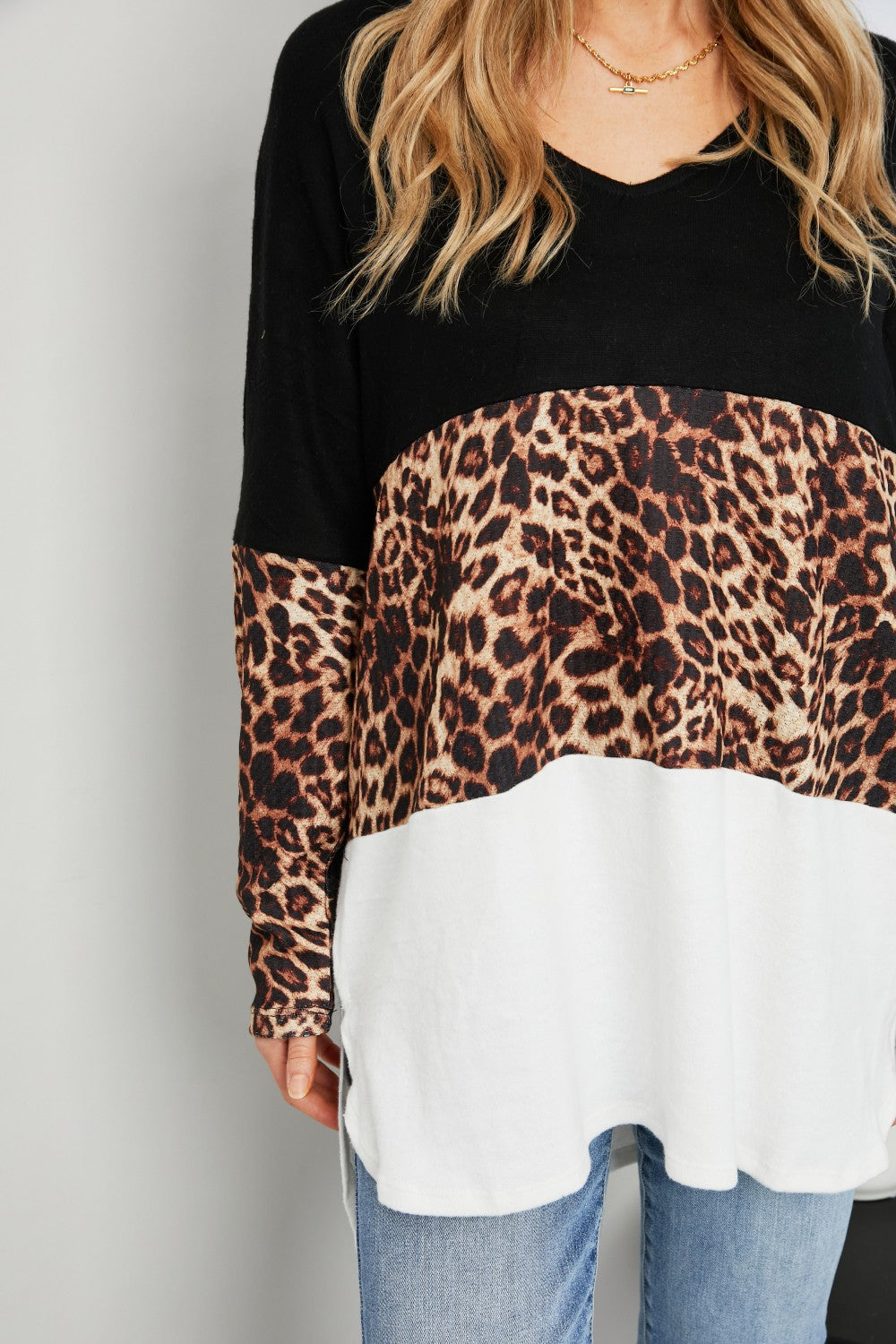 Culture Code Leopard Color Block Slit Tunic Top