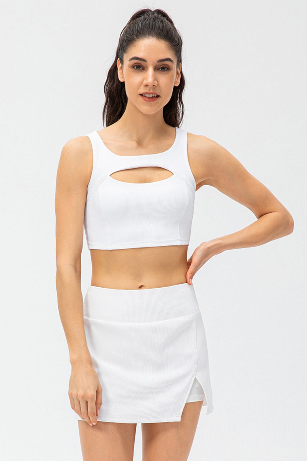 - Features: Cutout, sleeveless, removable padding