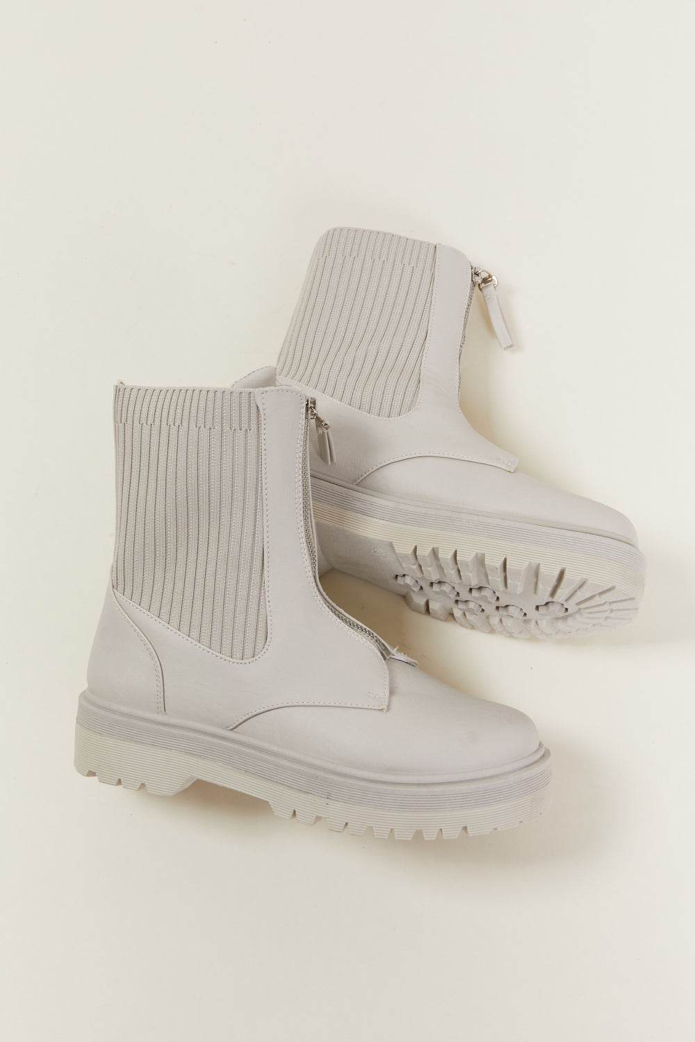 Here's a trendy pick for your autumn shoe collection! These booties have a zipper in the front, ribbed stretchy sides, and a chunky platform sole.