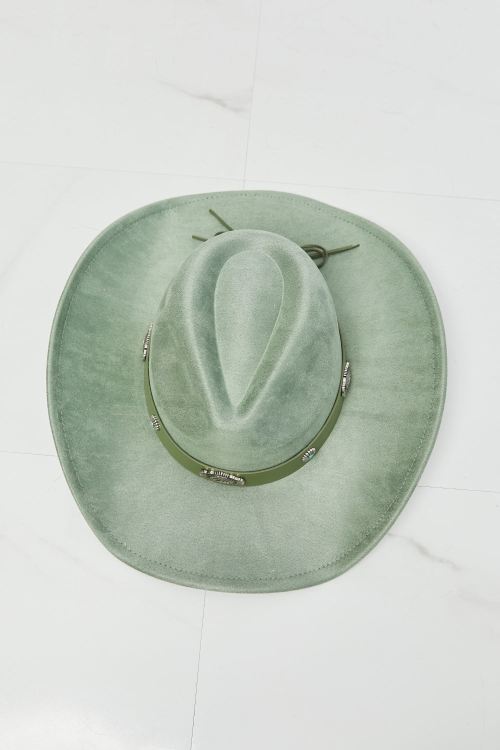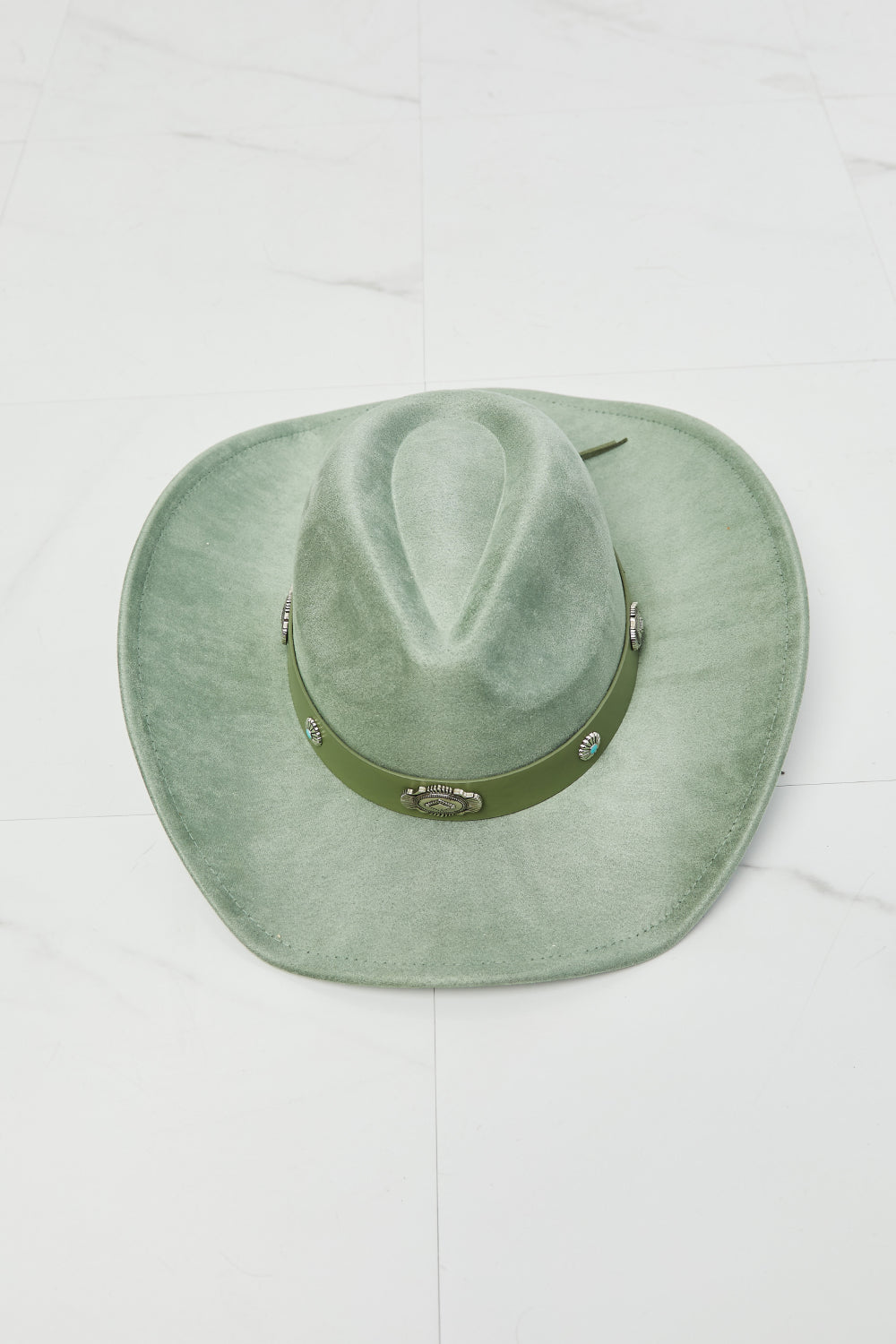 A suede cowboy hat can elevate your spring/summer outfit in no time! This gorgeous hat has a faux leather strap with silver hardware and adjustable straps. Pair with a dress or jeans for an elevated look.