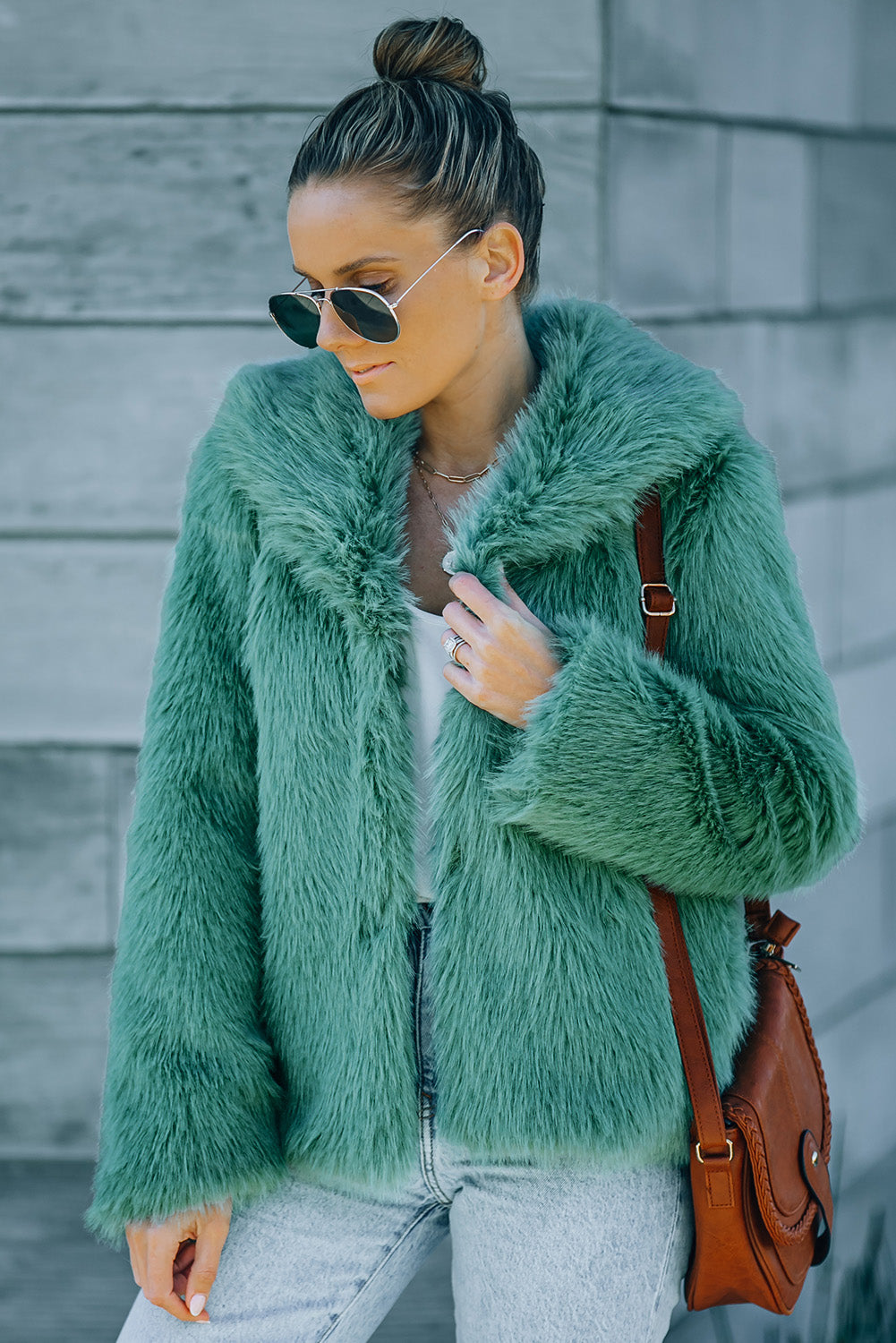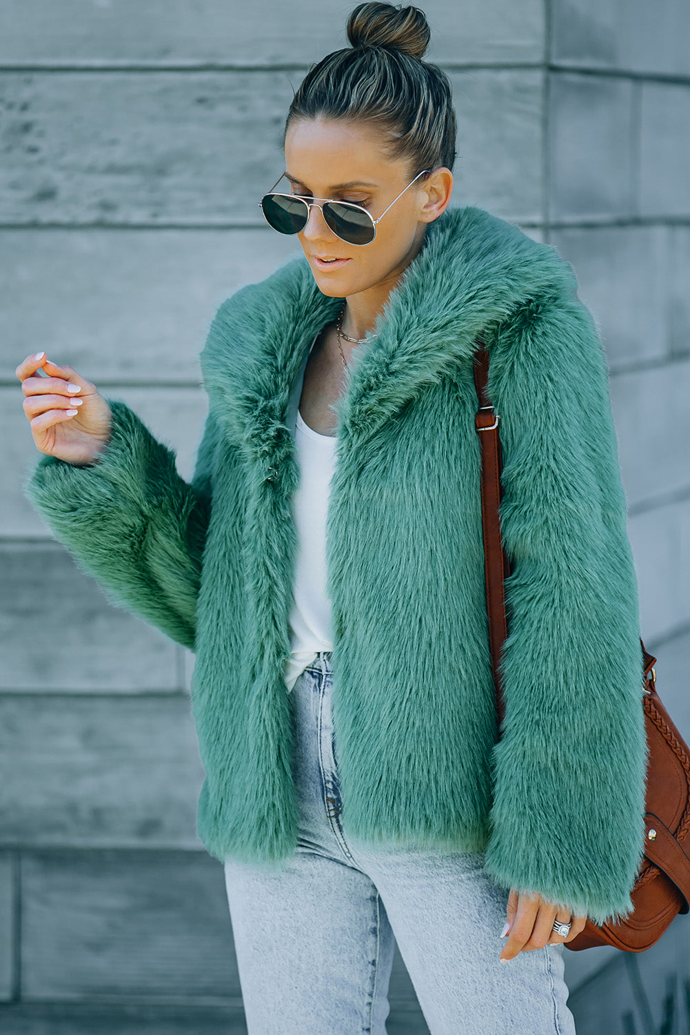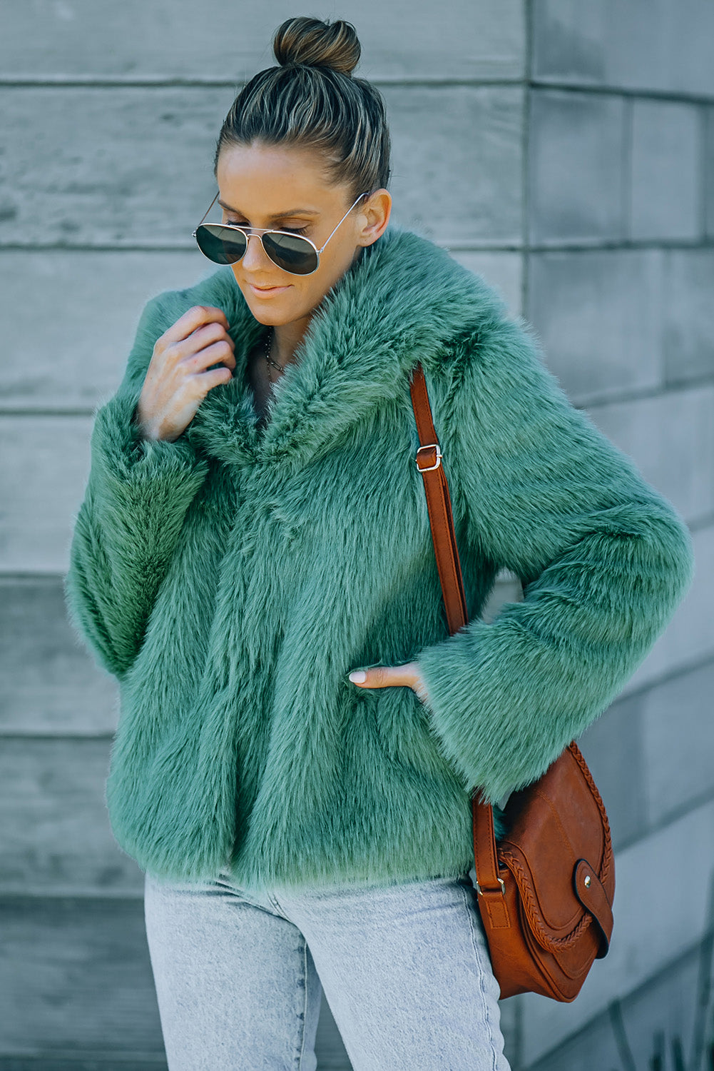 This classic faux fur jacket is a must-have in your wardrobe. Its chic and urban style features long sleeves and side pockets. It's top-quality material that makes the jacket feel so soft and warm.