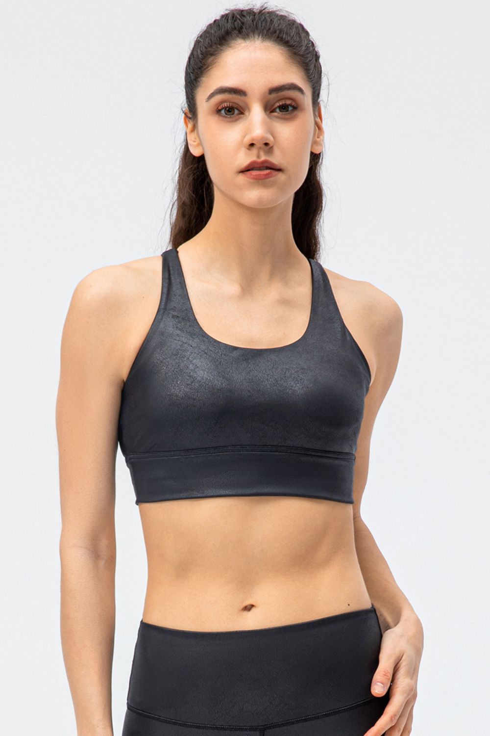 • Load image into Gallery viewer, Faux Leather Double Crisscross Strap Sports Bra