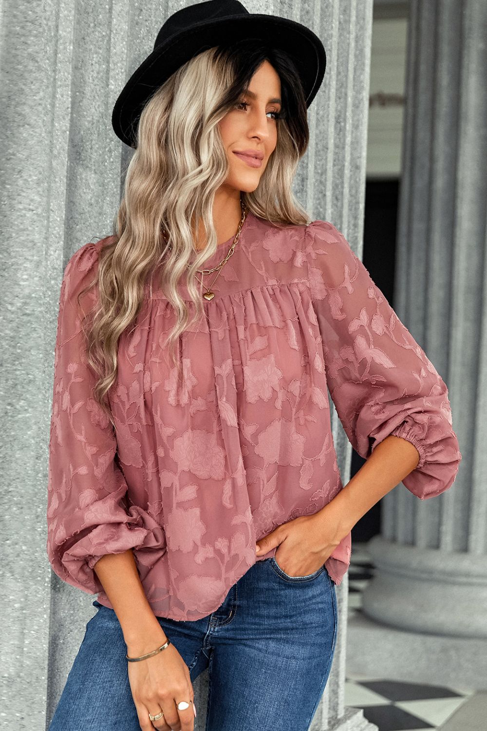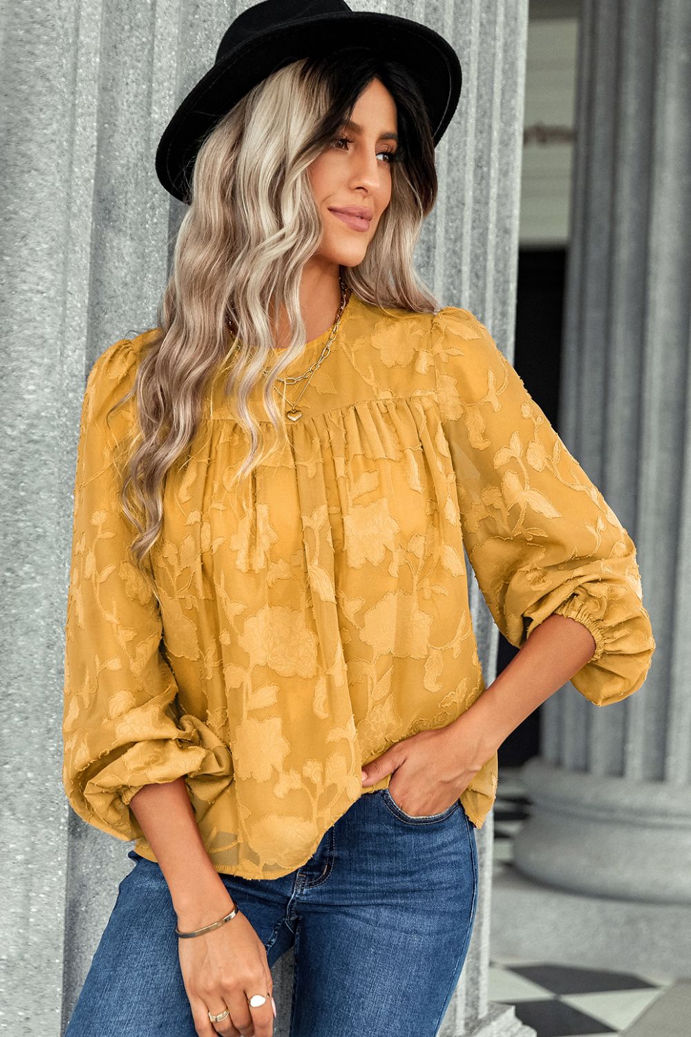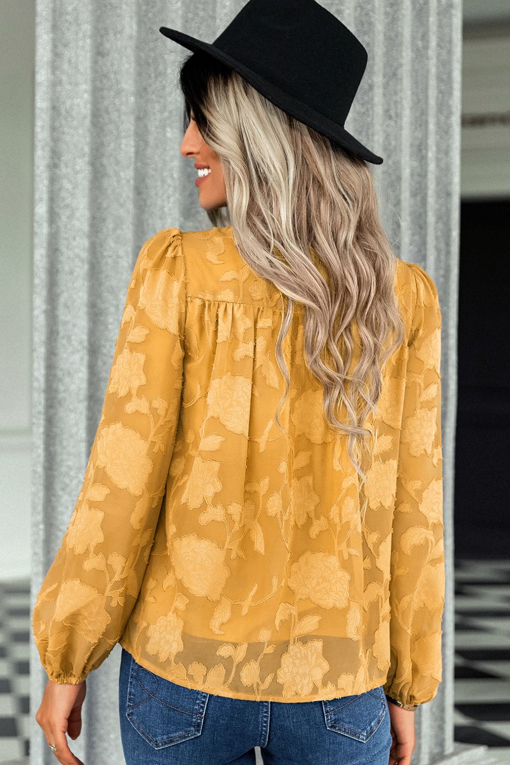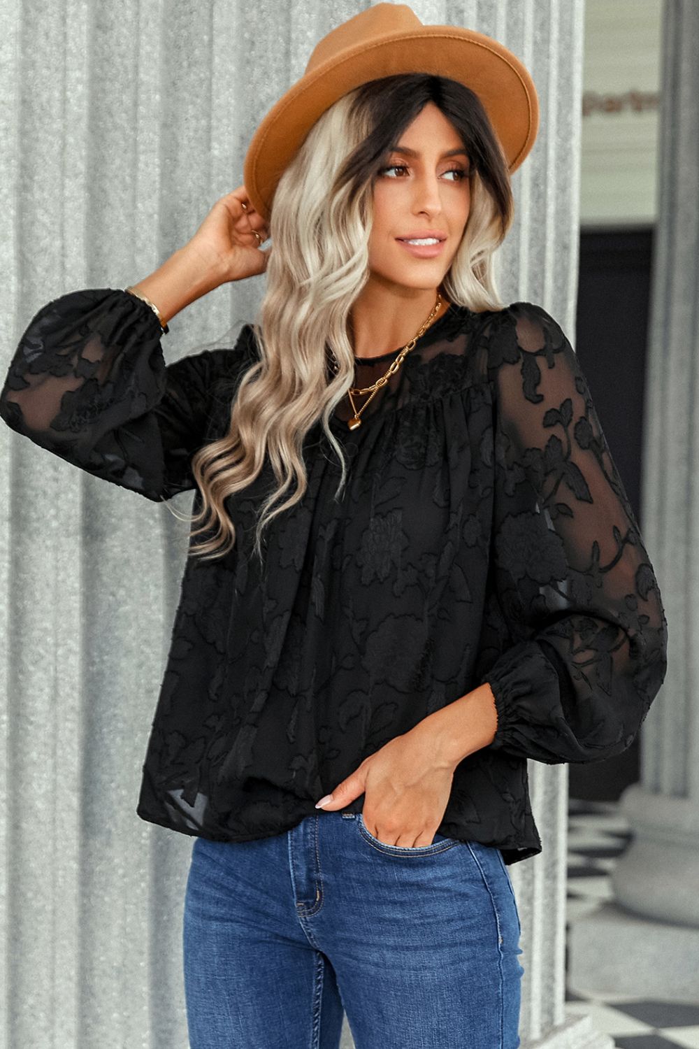 • Load image into Gallery viewer, Floral Applique Puff Sleeve Blouse